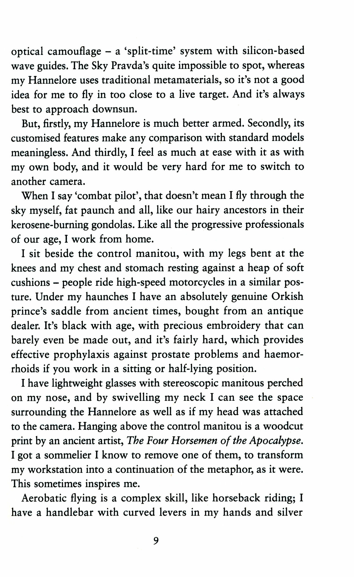 Damilola Karpov is a pilot. Living in Byzantium, a huge sky city floating above the land of Urkaine, he makes his living as a drone pilot - capable of being a cameraman who records the events unfolding in Urkaine or, with the weapons aboard his drone, of making a newsworthy event happen for his employers: 'Big Byz Media'.