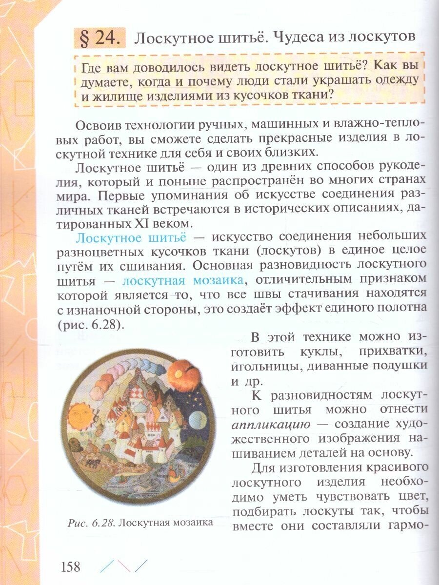Методический аппарат учебника составляют вопросы для самопроверки, система заданий, включающих исследовательские, графические, практические задания, задания с использованием Интернета, а также темы проектов. Учебник содержит рубрику "Полезная информация", в которую помещён дополнительный материал, словари профессий и основных понятий и терминов.