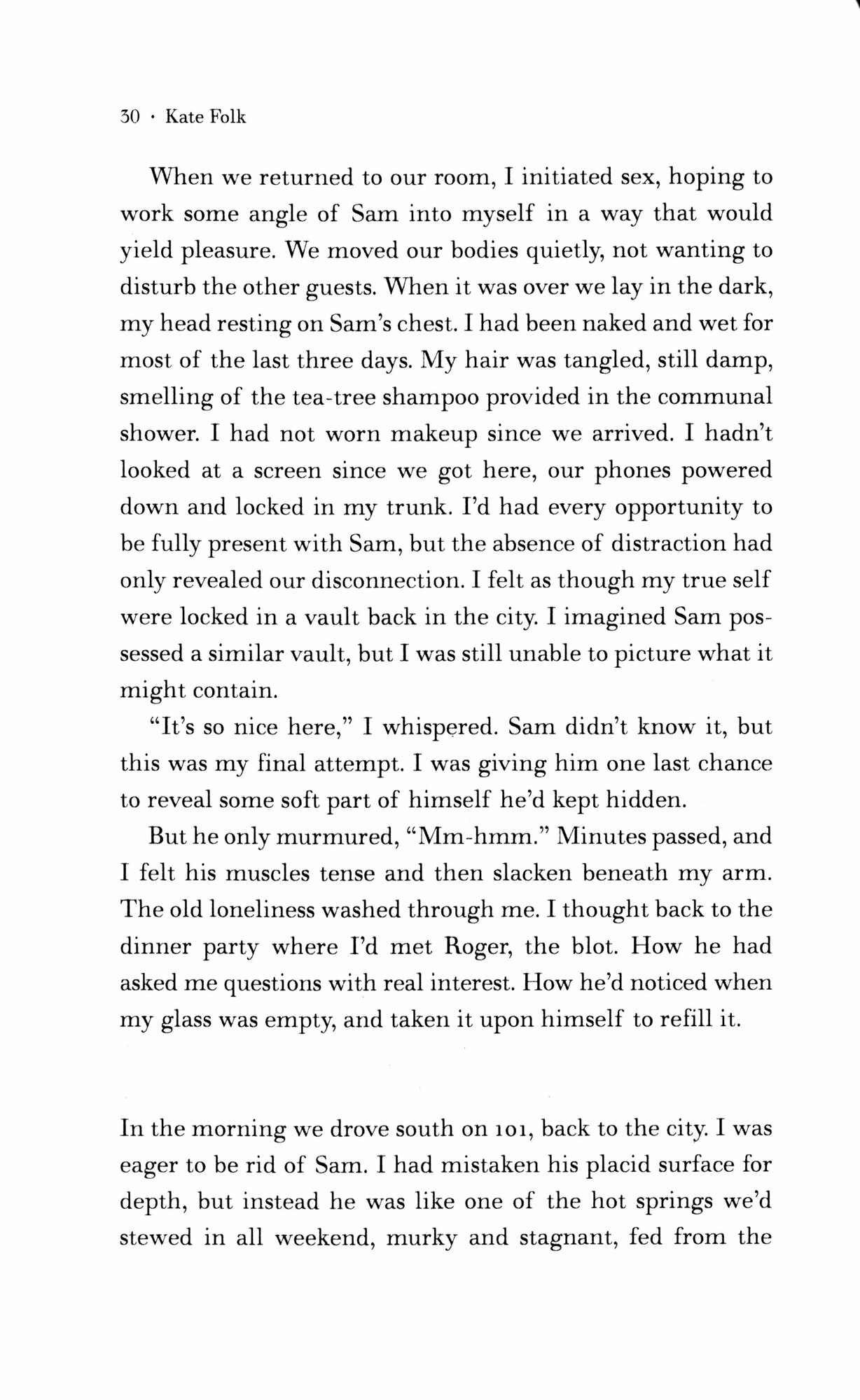 A fleet of fake men called 'blots' is unleashed onto the dating apps of San Francisco, intent upon conning vulnerable women out of their data, in the exquisite title story Out There. Companion story Big Sur focuses on the reality of the blots' personal experiences.