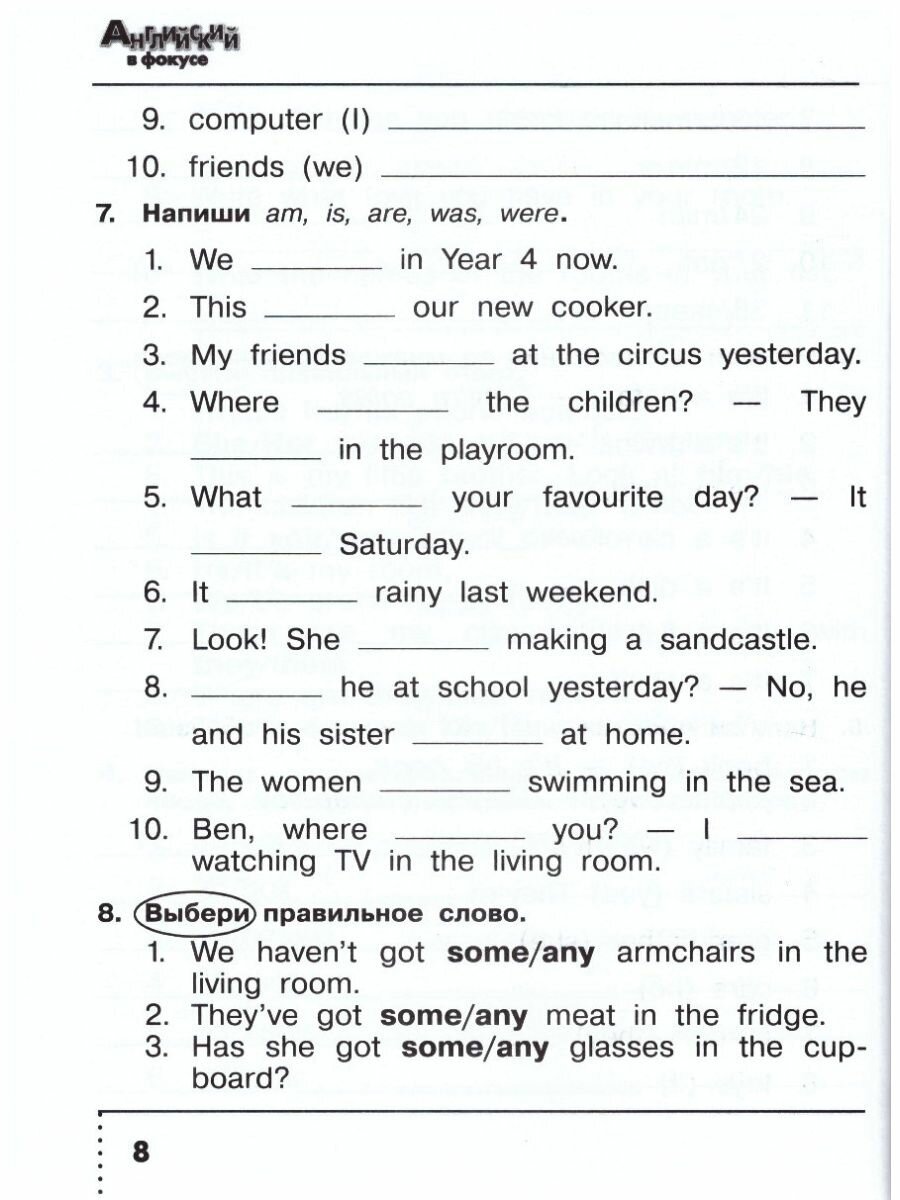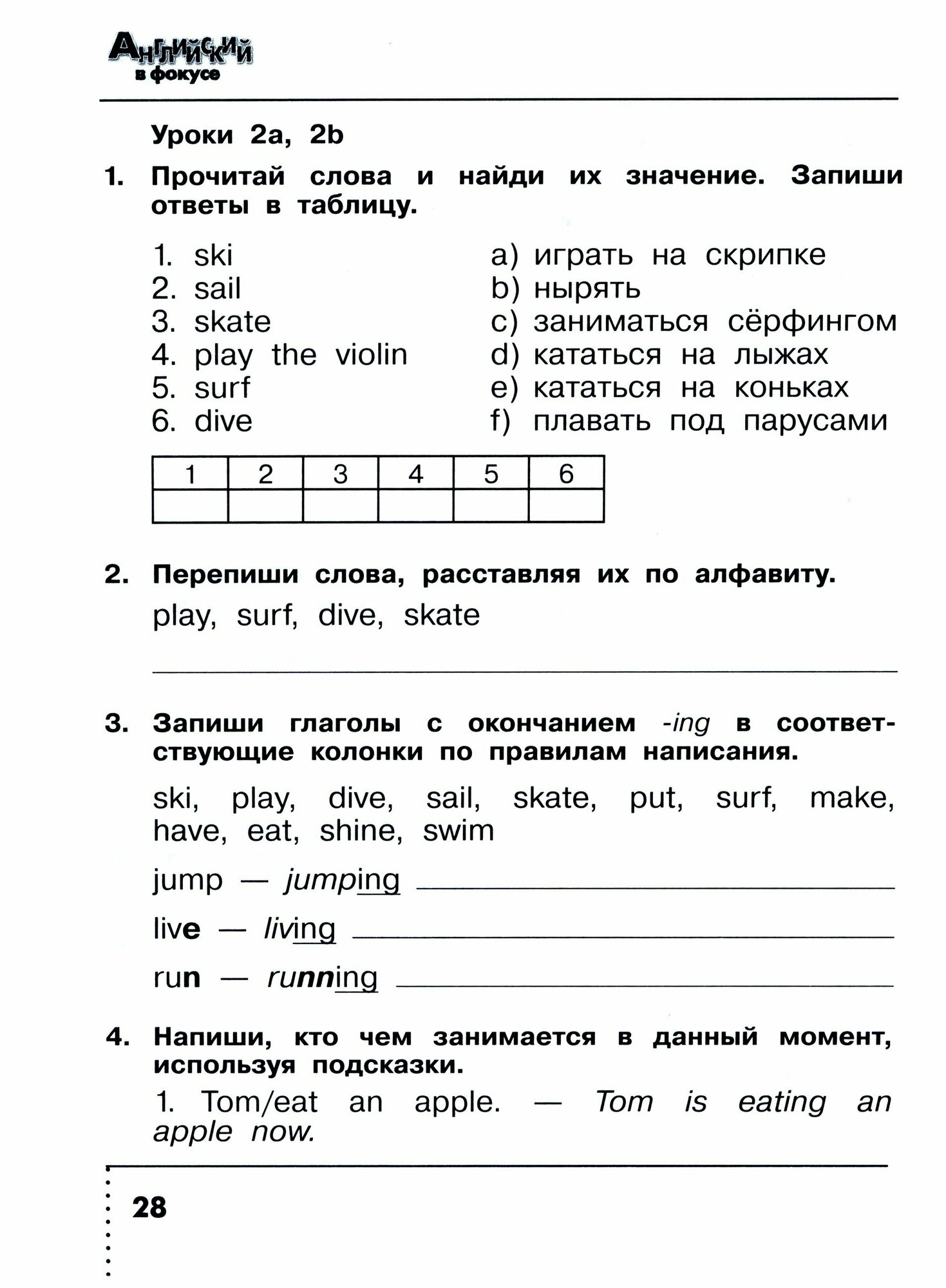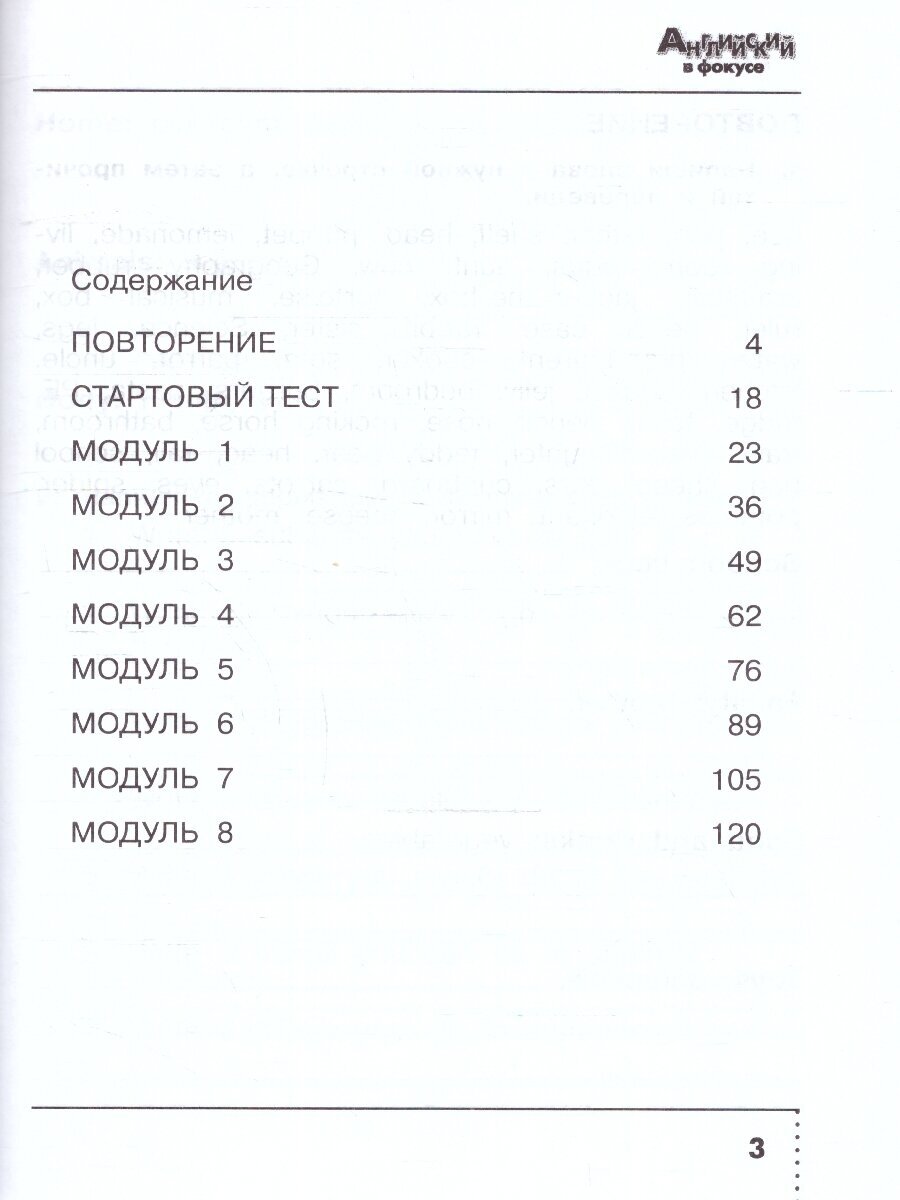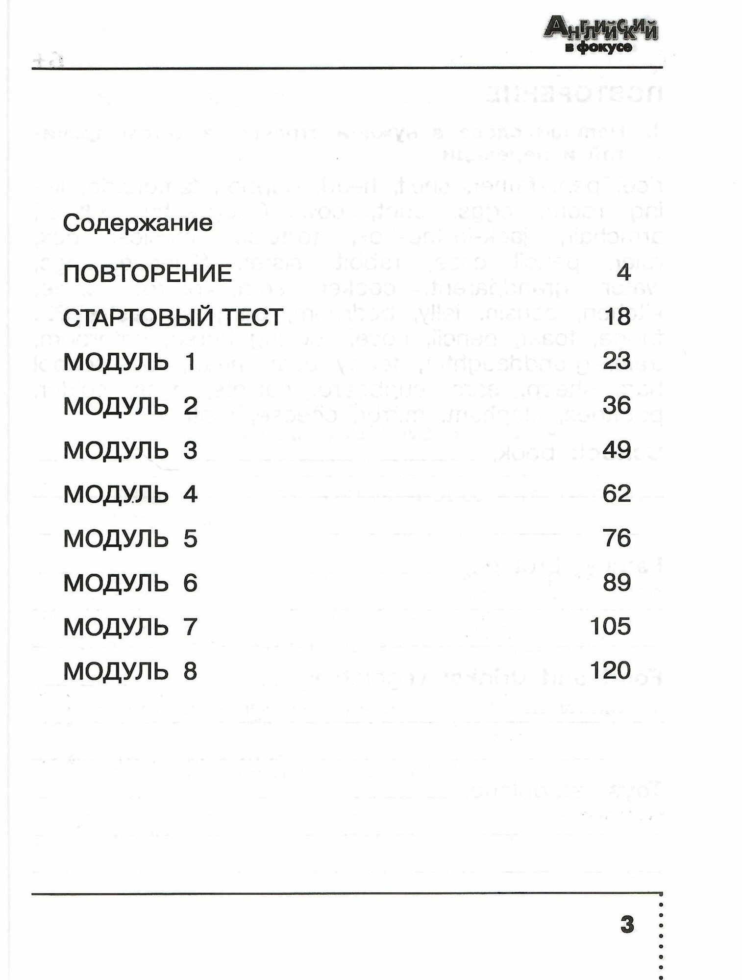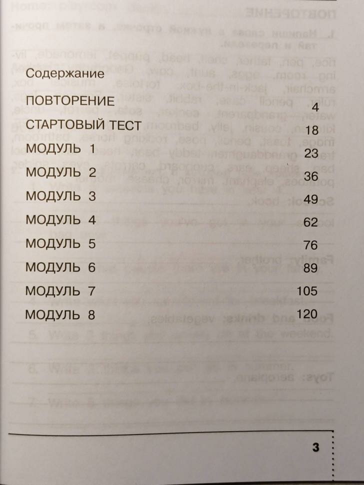 Хорошее дополнение к учебнику. Есть раздел повторение и стартовый тест. Затем задания разделены на 8 модулей с указанием уроков, к которым они относятся. В конце каждого модуля повторение и закрепление материала на лексику и грамматику.