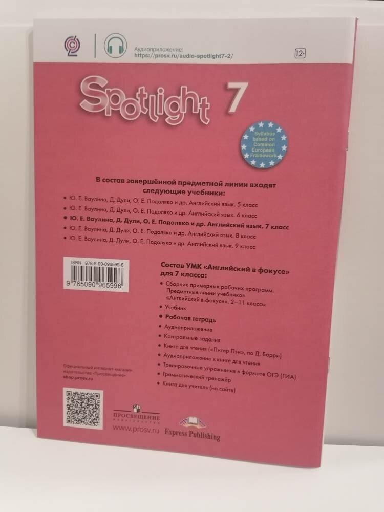 На сегодняшний день товар «Книга: Spotlight. Английский язык. Рабочая тетрадь. 7 класс (Ваулина Юлия Евгеньевна, Дули Дженни, Подоляко Ольга Евгеньевна); Просвещение, 2023» можно купить с кешбеком в 3 магазинах: book24, Буквоед, Читай-город