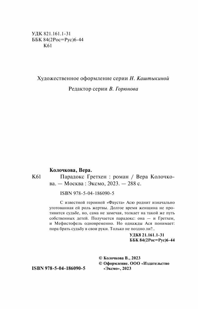 Книга: Парадокс Гретхен (Колочкова Вера Александровна); Эксмо, Редакция 1, 2023