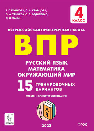 ВПР. Русский язык математика окружающий мир. 4-й класс. 15 тренировочных вариантов (Коннова Елена Генриевна; Кравцова Светлана Анатольевна; Уринева Светлана Александровна; Федотенко Светлана Викторовна); Легион, 2023