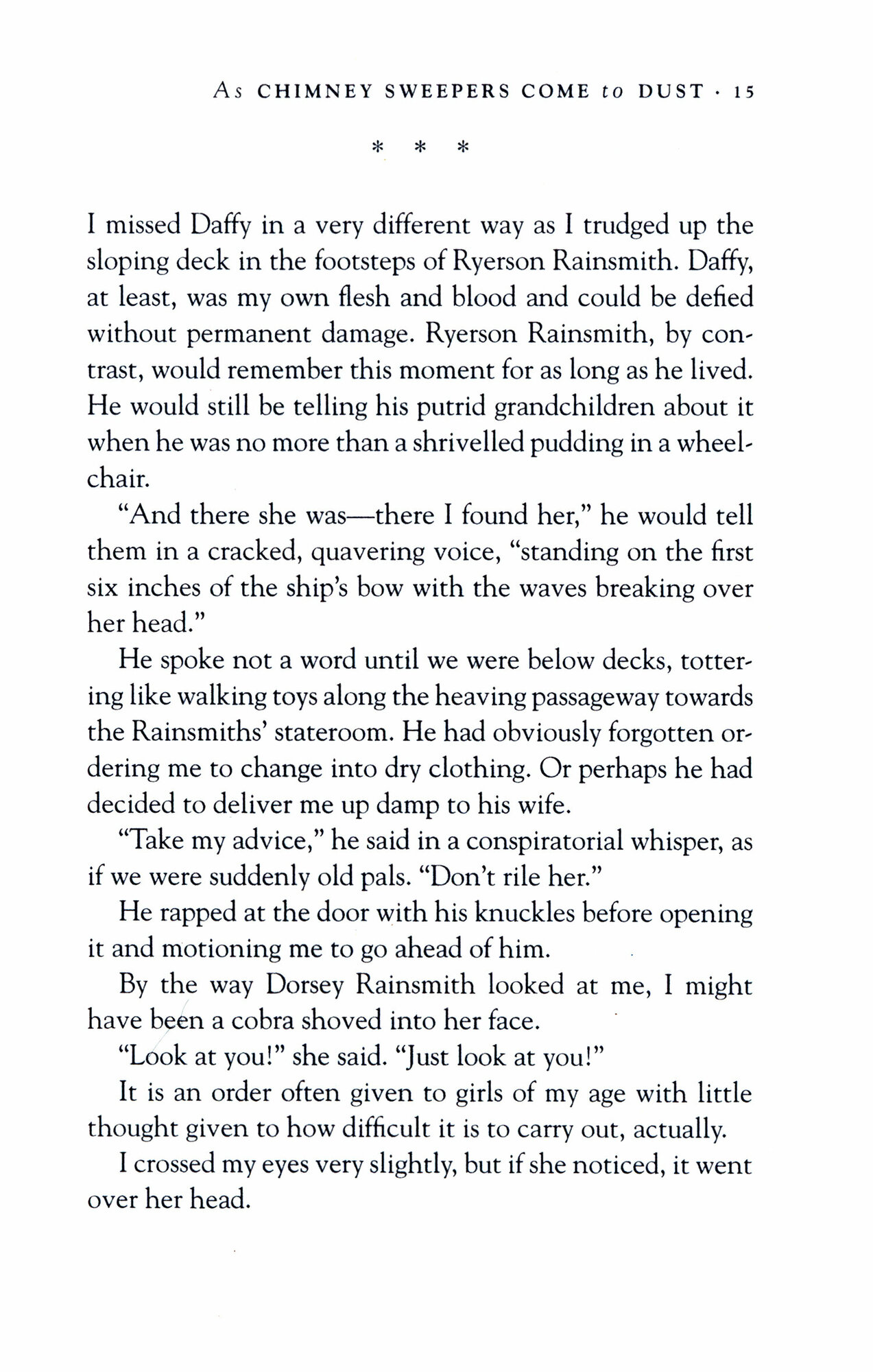 But Flavia is soon on familiar ground when she is presented with a gruesome puzzle to solve. And the mystery of a withered corpse is only the beginning. Girls have been disappearing from Miss Bodycote's, leading Flavia to wonder what exactly the academy's true purpose is, and why were her father and Aunt Felicity so keen that she enrol?