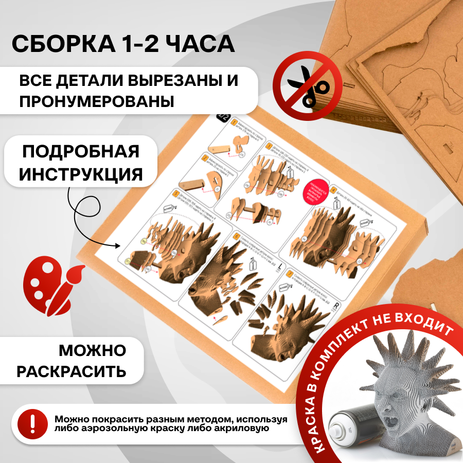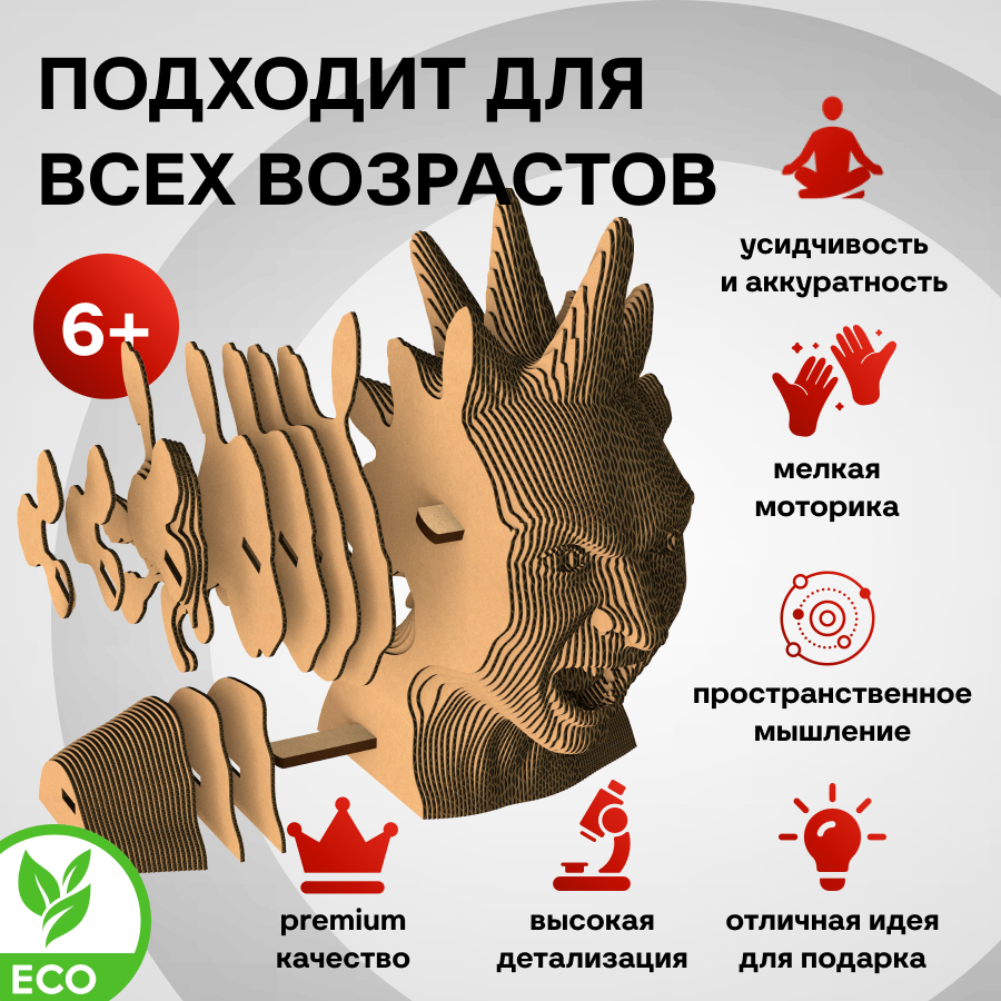 Это оригинальные 3D конструкторы (сборные модели). Каждый комплект изготовлен из пищевого гофрокартона – нетоксичного, экологически чистого материала, пригодного для повторного использования. А каждая деталь вырезана и прономерована при помощи высокоточной лазерной резки. Конструктор легко собрать по прилагаемой инструкции.