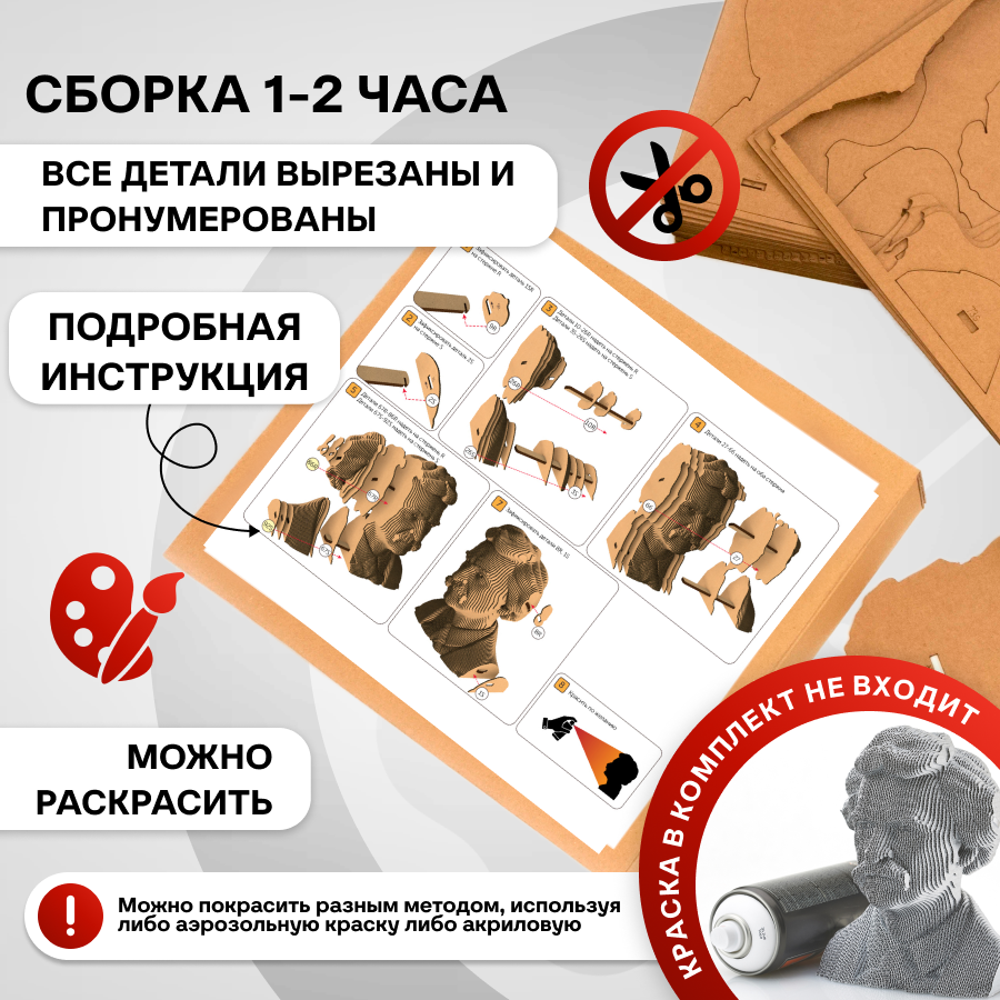 Это оригинальные 3D конструкторы (сборные модели). Каждый комплект изготовлен из пищевого гофрокартона – нетоксичного, экологически чистого материала, пригодного для повторного использования. А каждая деталь вырезана и прономерована при помощи высокоточной лазерной резки. Конструктор легко собрать по прилагаемой инструкции.