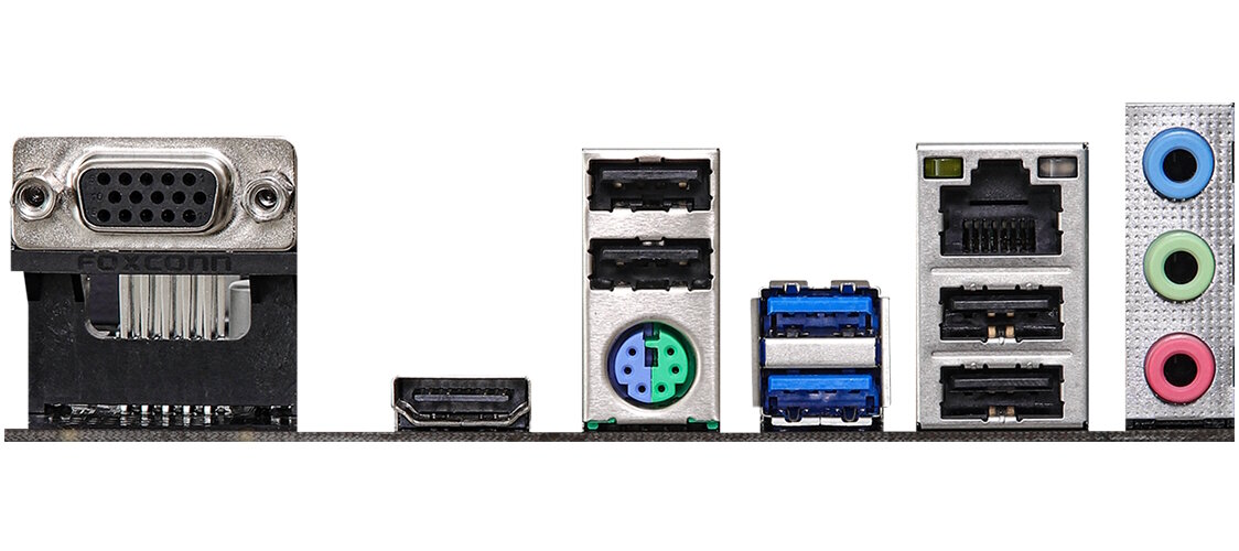 | Внешние выходы | PS/2, 4 x USB 2.0, 2 x USB 3.2 Gen1, VGA, HDMI, RJ-45 |