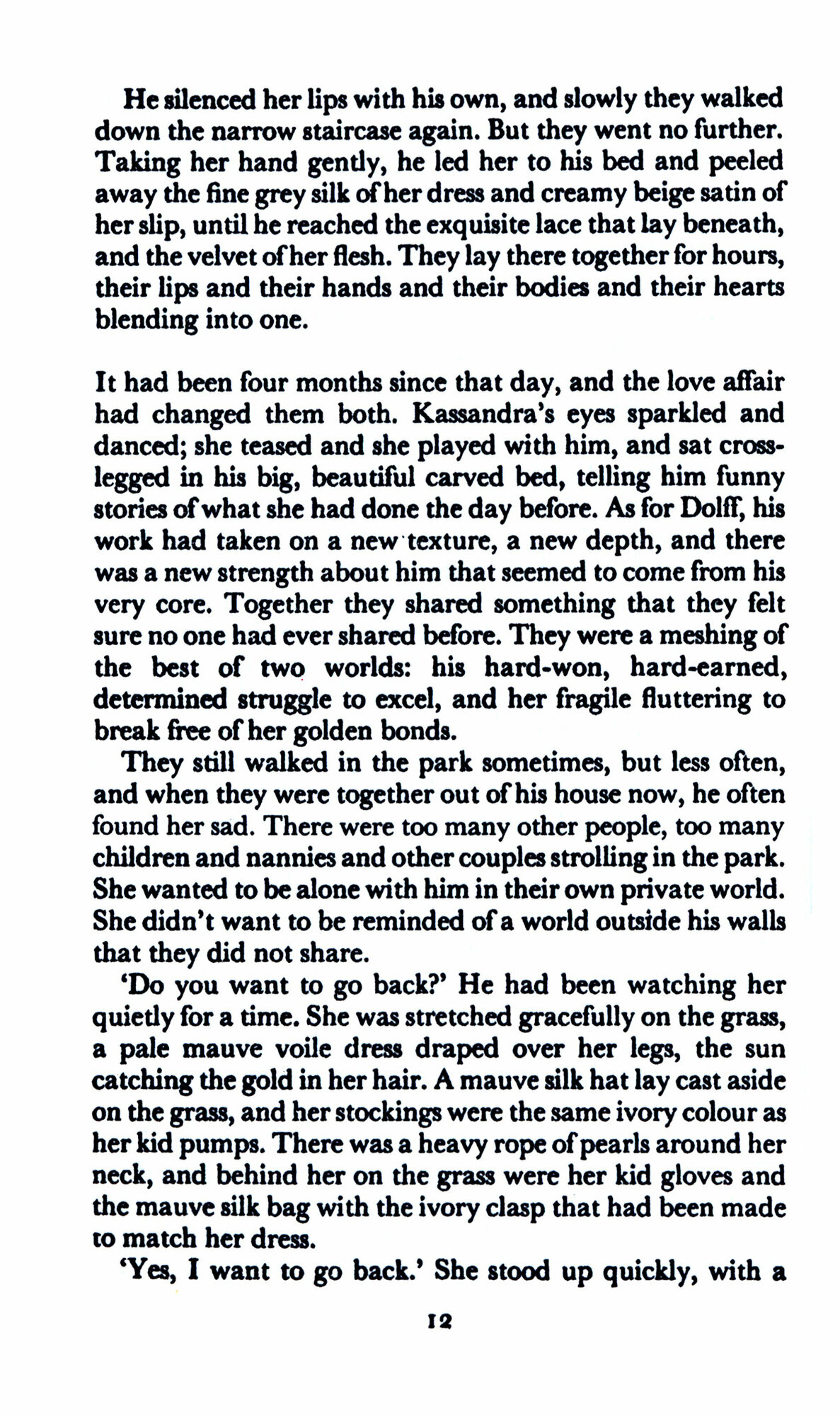 In the turbulent days of Germany in the thirties, Kassandra von Gotthard met the man who would change her life: Dolff Sterne. She was the beautiful wife of a wealthy Berlin banker. He was a famous Jewish writer. Together they shared a love that happens only once in a lifetime. But theirs was a love fated to end in tragedy.