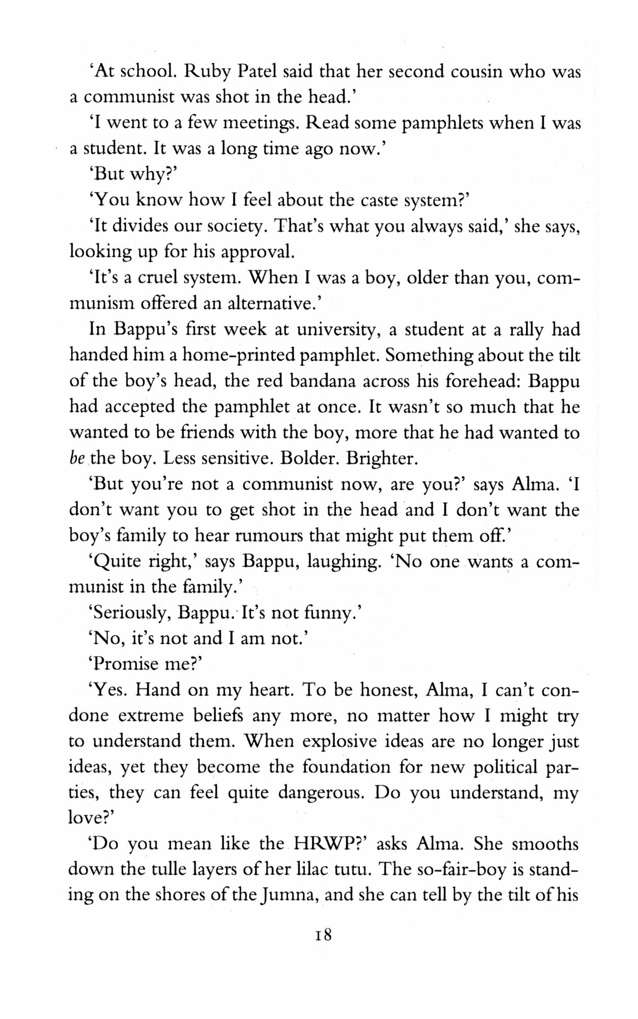 Ma and Bappu are liberal intellectuals teaching at the local university. Their fourteen year-old daughter - precocious, headstrong Alma - is soon to be married: Alma is mostly interested in her wedding shoes and in spinning stories for her beloved younger sister Roop.