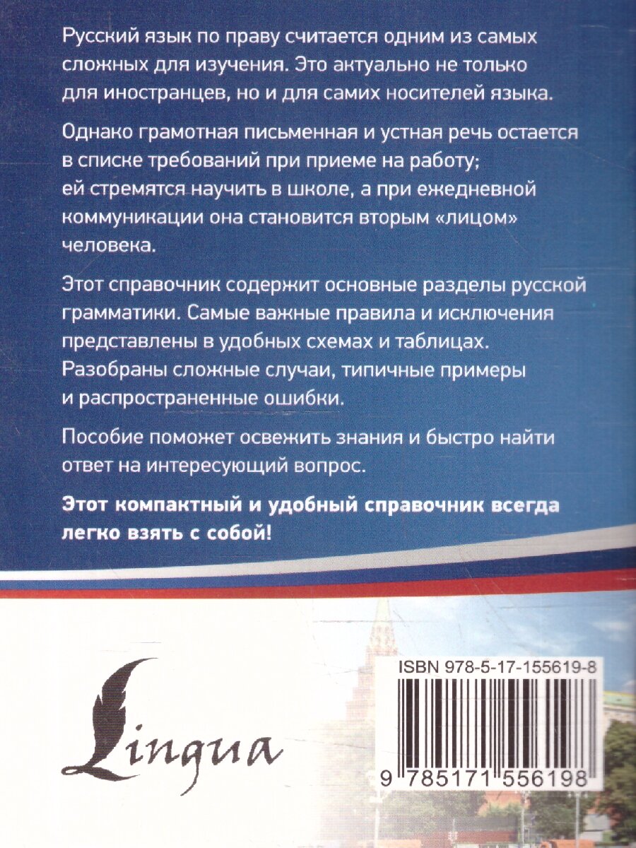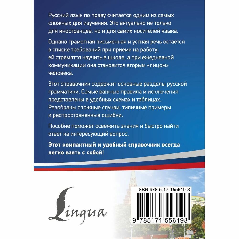 Данный справочник охватывает наиболее значимые аспекты грамматики русского языка, а также раскрывает сложные случаи правописания. Структура пособия включает как орфографию, так и пунктуацию.