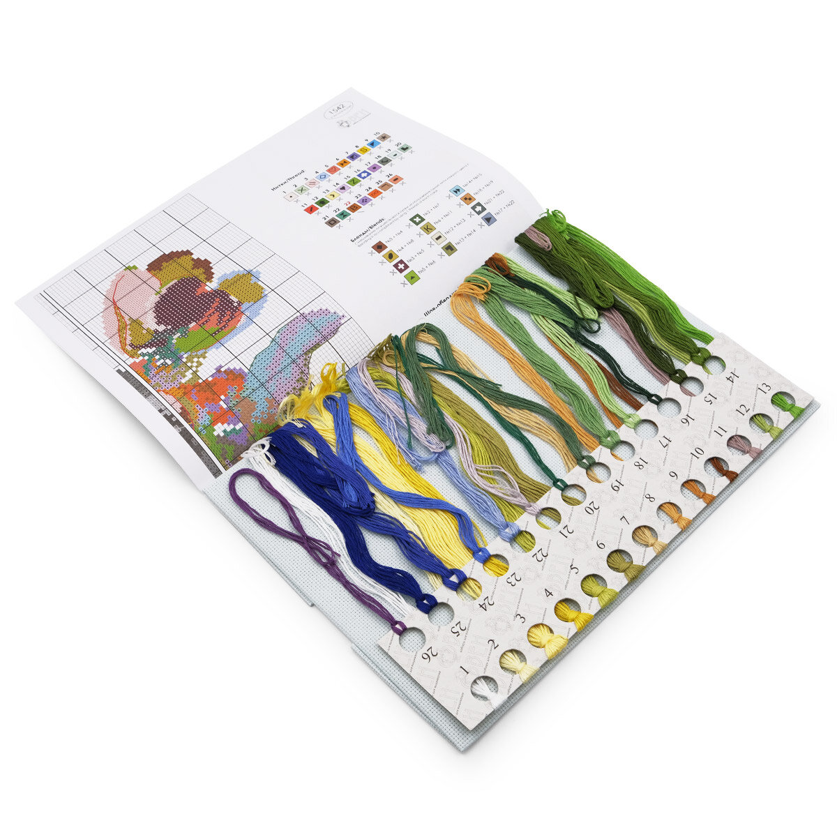 | Комплектация | канва Aida 16 ct светло-голубая, хлопковое мулине Luca-S, игла, схема, инструкция |