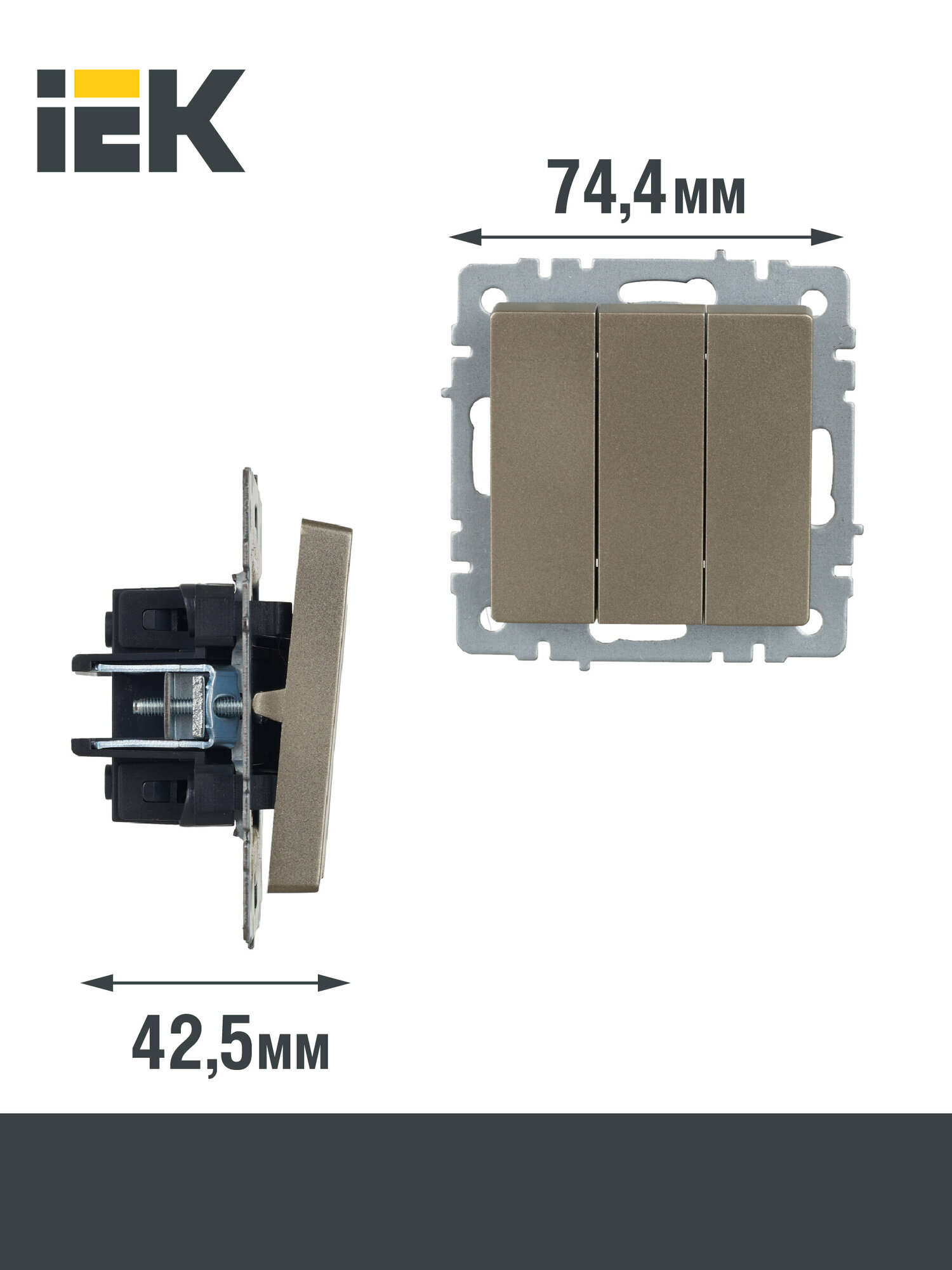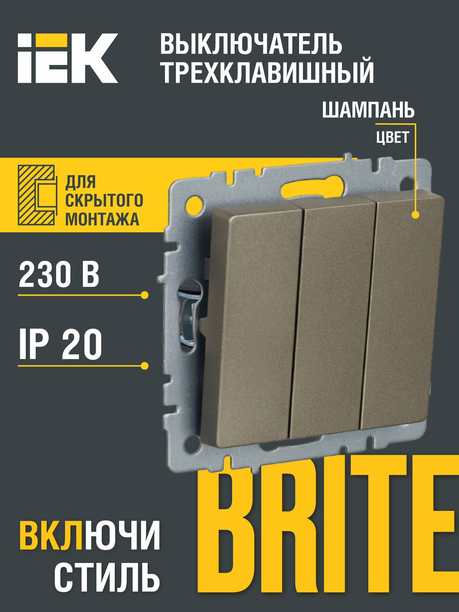 выключатель 3-клавишный IEK BRITE 10А шампань (BR-V30-0-10-K37)