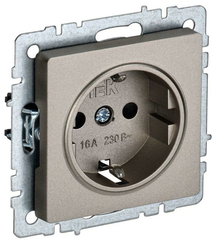 **Розетка IEK ** — встраиваемая модель оснащена заземлением. Изготовлена из прочного пластика, не поддерживающего горение. Предназначена для установки в стены и панели.