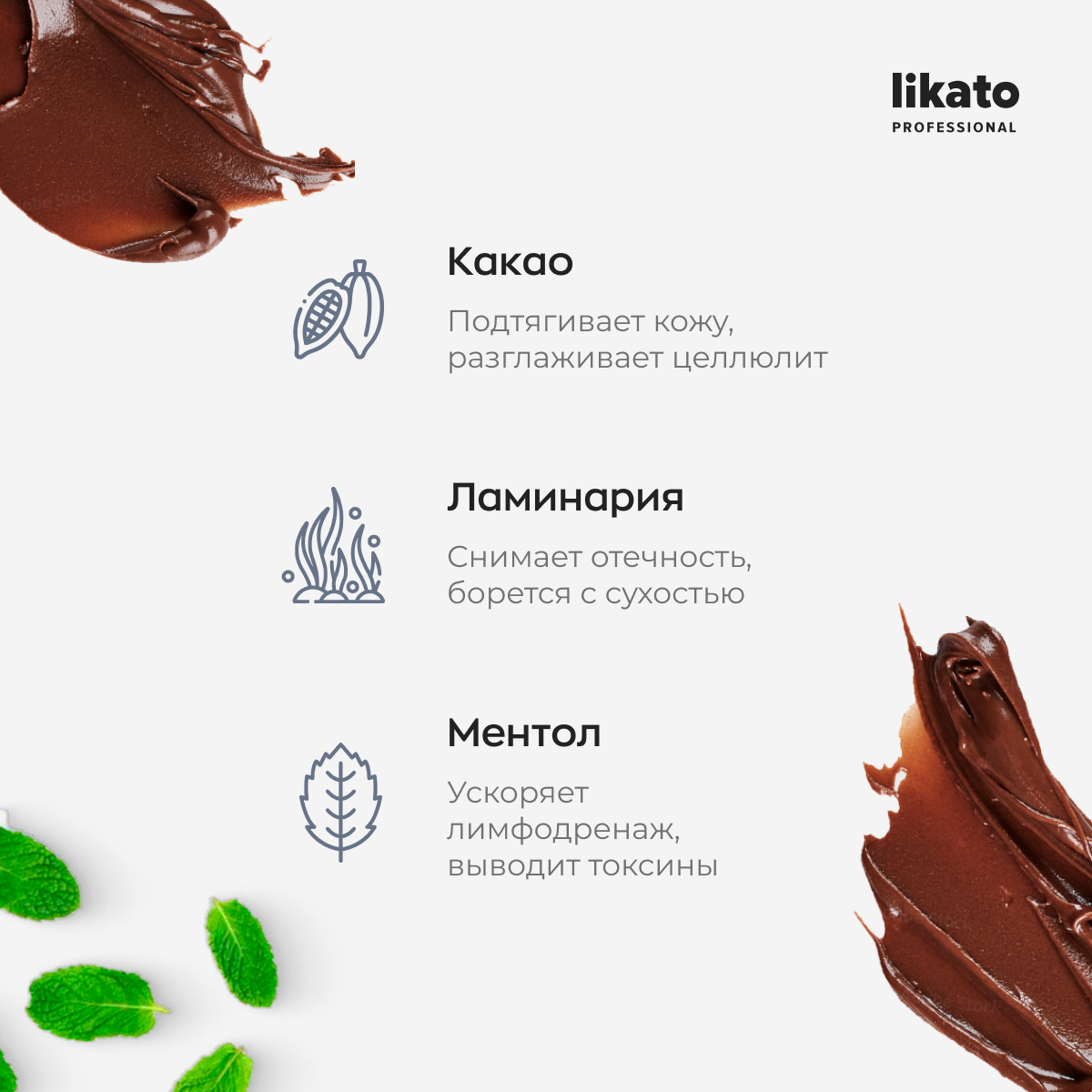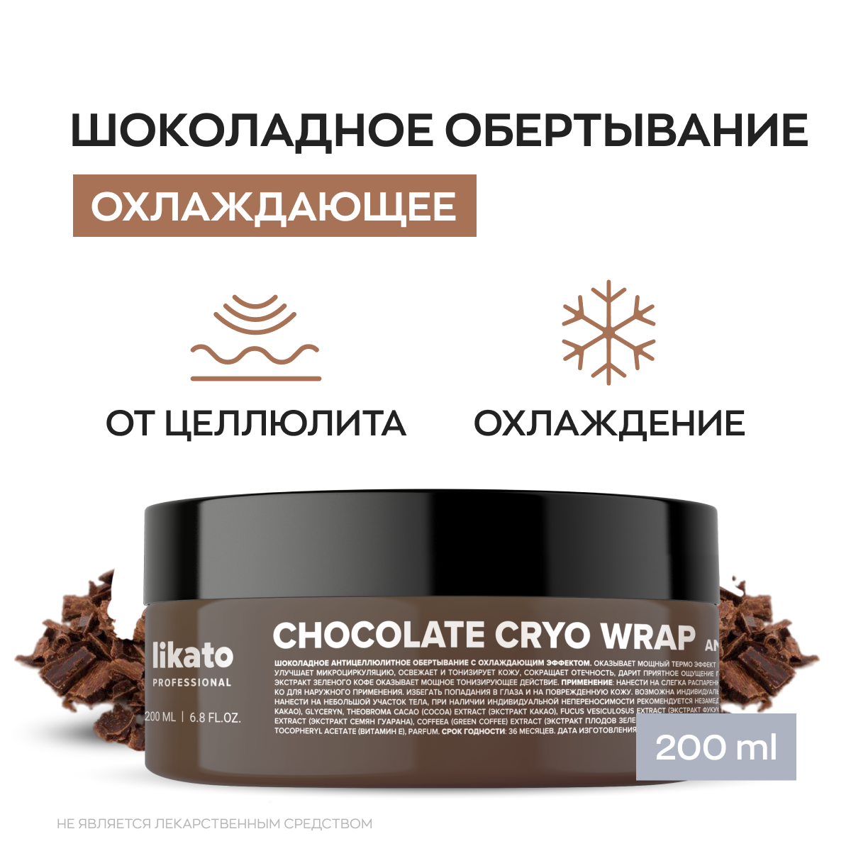 LIKATO PROFESSIONAL Обертывание шоколадное антицеллюлитное с охлаждающим эффектом / Likato 200 мл (4603784468576)