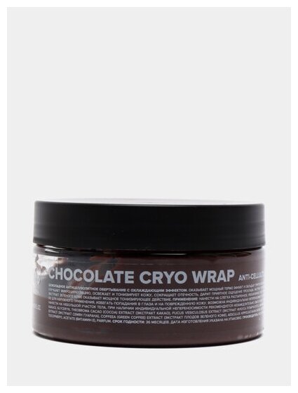 Шоколадное антицеллюлитное обертывание с охлаждающим эффектом оказывает мощный термо эффект и обладает притягательным ароматом какао, устроит настоящее aroma-spa прямо у тебя дома! Экстракт и масло какао оказывает выраженный разглаживающий эффект. Ментол улучшает микроциркуляцию, освежает и тонизирует кожу, сокращает отечность, дарит приятное ощущение прохлады. Экстракт фукуса способствует сокращению растяжек, обеспечивает активный лифтинг. Экстракт ламинарии повышает гладкость, упругость и эластичность кожи. Экстракт зеленого кофе оказывает мощное тонизирующее действие.