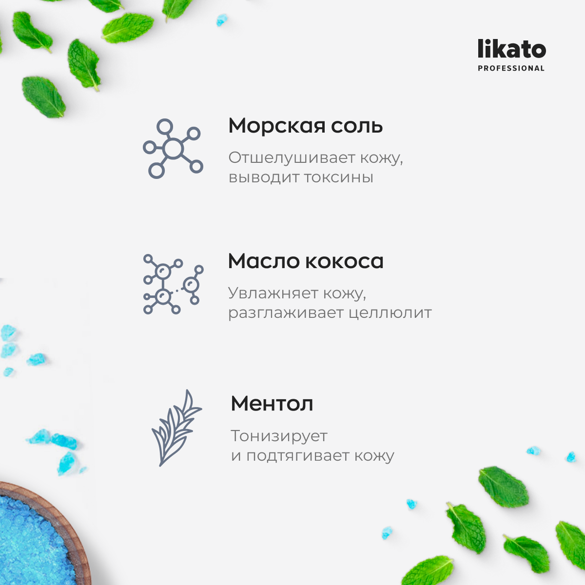 Антицеллюлитный скраб для тела с лифтинг-эффектом. Морская соль глубоко очищает, отшелушивает ороговевшие клетки, обладает противовоспалительным действием. Ментол стимулирует микроциркуляцию крови и лимфы в капиллярах, что помогает бороться с подкожными застоями, тонизирует, освежает и охлаждает кожу. Водоросли активизируют микроциркуляцию и обменные процессы в тканях, способствуют выведению токсинов и расщеплению жиров, устранению эффекта «апельсиновой корки». Диоксид кремния визуально выравнивает кожу, сглаживает неровности. Биофлавоноиды заметно повышают упругость и эластичность кожи. Масло кокоса интенсивно увлажняет и питает кожу, регенерирует верхние слои эпидермиса, снимает воспаления и раздражения.