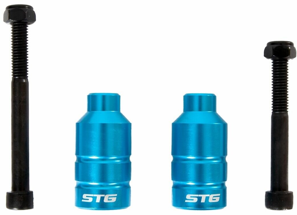 Пеги STG для трюкового самоката с осью, 22.2 мм, алюминиевые, 2 штуки, болты М8х64/М8х80 - 2 шт, Пеги длина 50 мм. Пеги для трюкового самоката с осью 22,2 мм, производитель - STG, совместимость - трюковые самокаты, диаметр - 22,2 мм, материал - алюминий, комплектация - 2 штуки. Пеги, так же их еще называют пэги – это запчасть для трюкового самоката, специальное приспособление в виде труб, которое крепится к оси колеса и служит для выполнения различных трюков и элементов экстремального катания. Пеги на трюковой самокат позволяют скользить по граням и перилам и выполнять разнообразные виды трюковых элементов. Пеги «STG» для самоката отличаются повышенной износоустойчивостью и надежностью. Подходят для большинства самокатов, также совместимы с некоторыми редкими моделями других производителей. Пеги выполнены из прочного алюминия, и вы можете не волноваться о скором выходе из рабочего состояния запчастей для самоката. В комплект входят такие запчасти для самокат трюковой, как: пеги – 2 штуки.