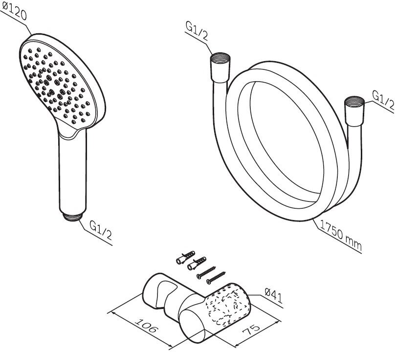 | ВКоробке | Душевая лейка - 1 шт. Настенный держатель - 1 шт. Шланг - 1 шт. Инструкция - 1 шт. |