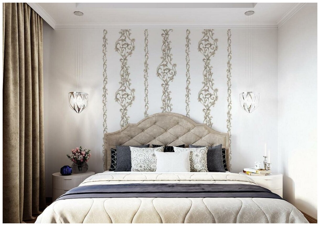 Главное преимущество коллекции – ажурные колонны, которые визуально увеличивают пространство комнаты. За основу коллекции взят оригинальный фон в виде перламутрового велюра. Благодаря своему рельефу он нежно переливается на свету, отлично скрывает неровности стен и клеится без подгона. За основу коллекции взят оригинальный фон в виде перламутрового велюра. Благодаря своему рельефу он нежно переливается на свету, отлично скрывает неровности стен и клеится без подгона.