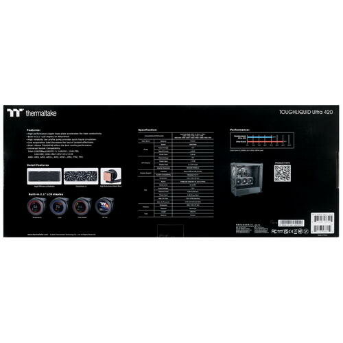 Процессоры нового поколения повышают требования к устройствам охлаждения, и если вы ищете высокопроизводительную систему жидкостного охлаждения замкнутого типа, то TOUGHLIQUID Ultra 420 - это то, что вам нужно. Система оснащается вращающимся ЖК-дисплеем 2.1 дюйма. Для активного охлаждения используются вентиляторы TOUGHFAN 14 со скоростью вращения до 2000 об/мин, которые гарантируют наилучшую производительность охлаждения.Персонализация ЖК-дисплея