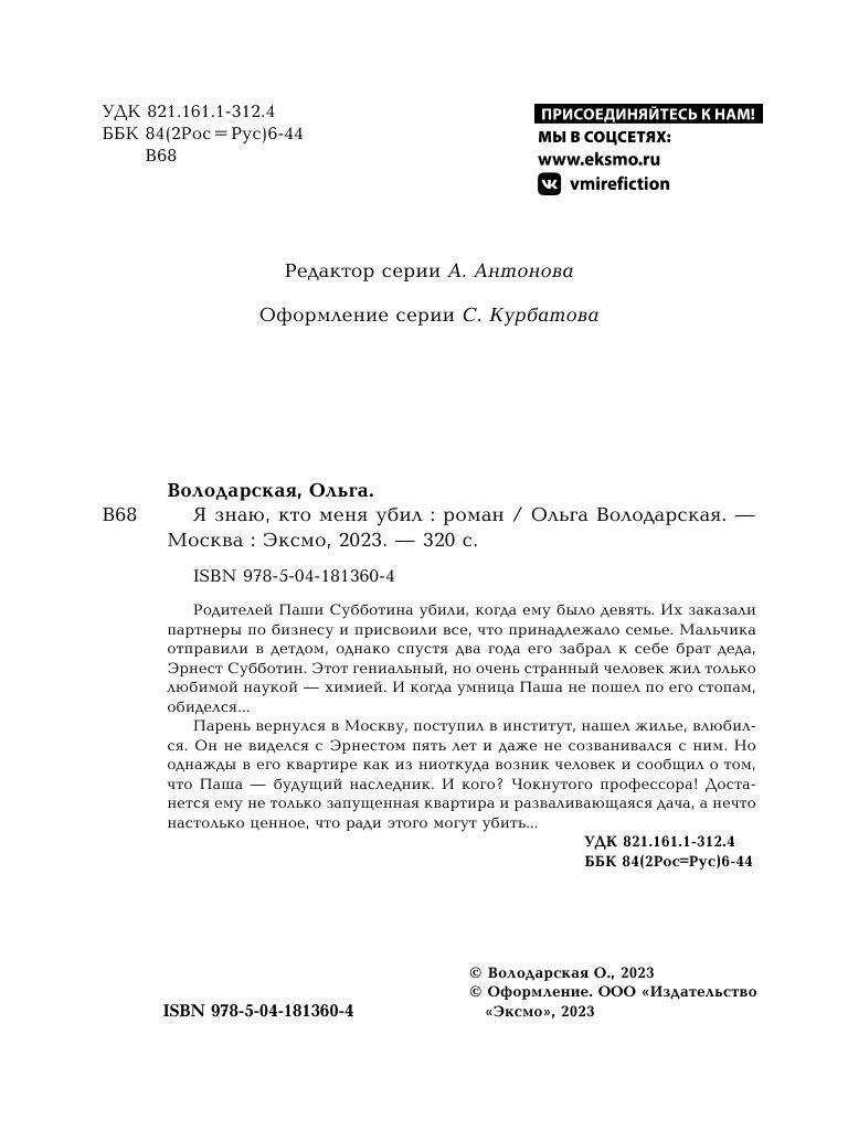Книга: Я знаю кто меня убил (Володарская Ольга Геннадьевна); ООО "Издательство "Эксмо", 2023