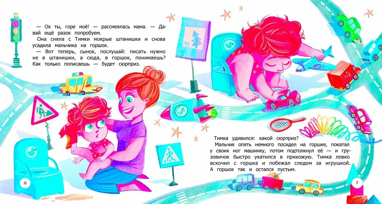 Тимка стал совсем взрослым - у него уже есть горшок! А тем, кто обходится без подгузника и умеет ходить на горшок, и бегать легче, и гулять можно дольше. Конечно, всё получится не сразу, но Тимка справится. Прощай, подгузник, привет, горшок!