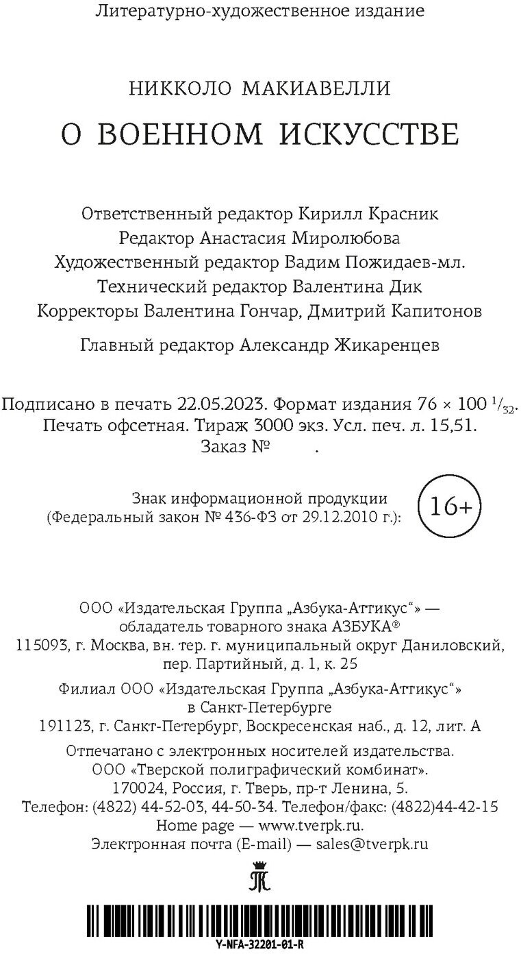 Книга: О военном искусстве (Макиавелли Никколо); Азбука Издательство, 2023