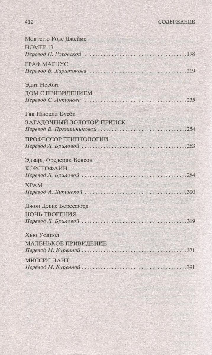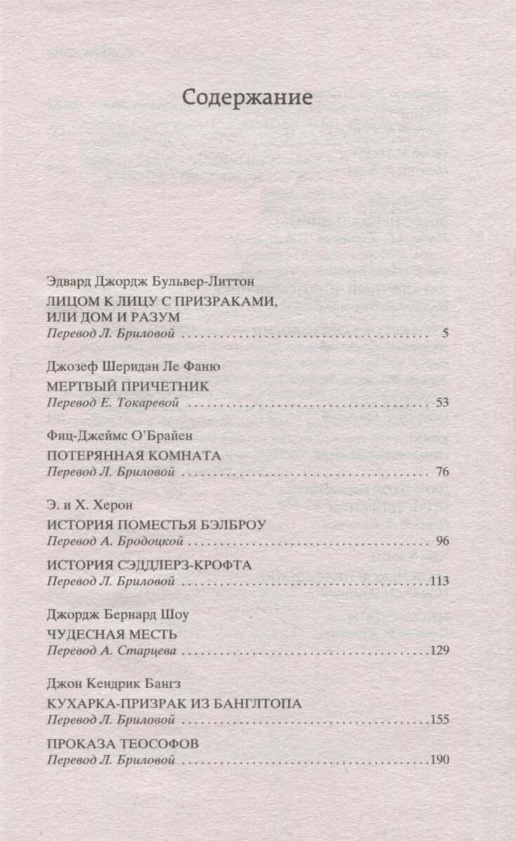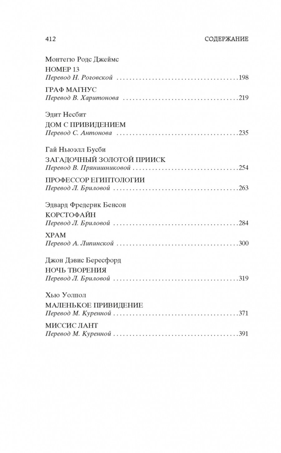 | Автор(ы) | Шоу Джордж Бернард, Бенсон Эдвард Фредерик, Ле Фаню Джозеф Шеридан, Джеймс Монтегю Родс, Несбит Эдит, Бульвер-Литтон Эдвард Джордж, О’Брайен Фиц-Джеймс, Херон Э. и Х., Бангз Джон Кендрик, Бусби Гай Ньюэлл, Бересфорд Джон Дэвис, Уолпол Хью |