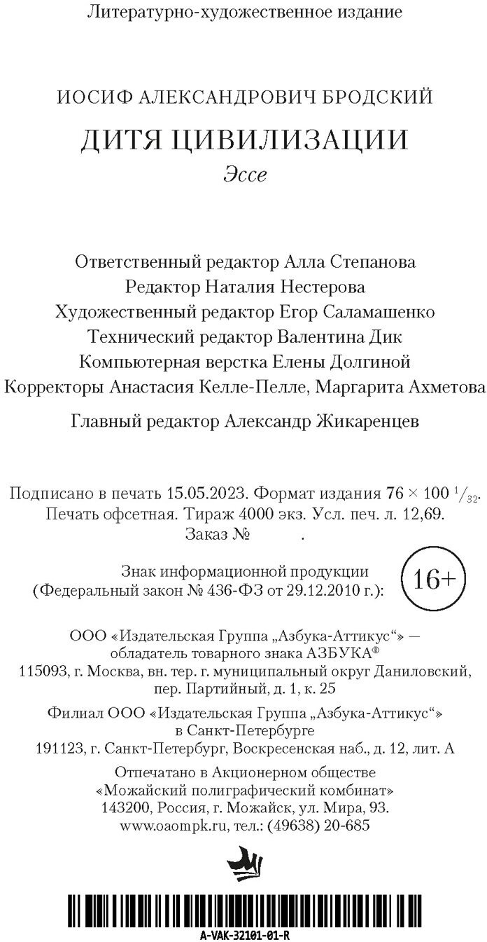 Книга: Дитя цивилизации. Эссе (Бродский Иосиф Александрович); Азбука, 2023