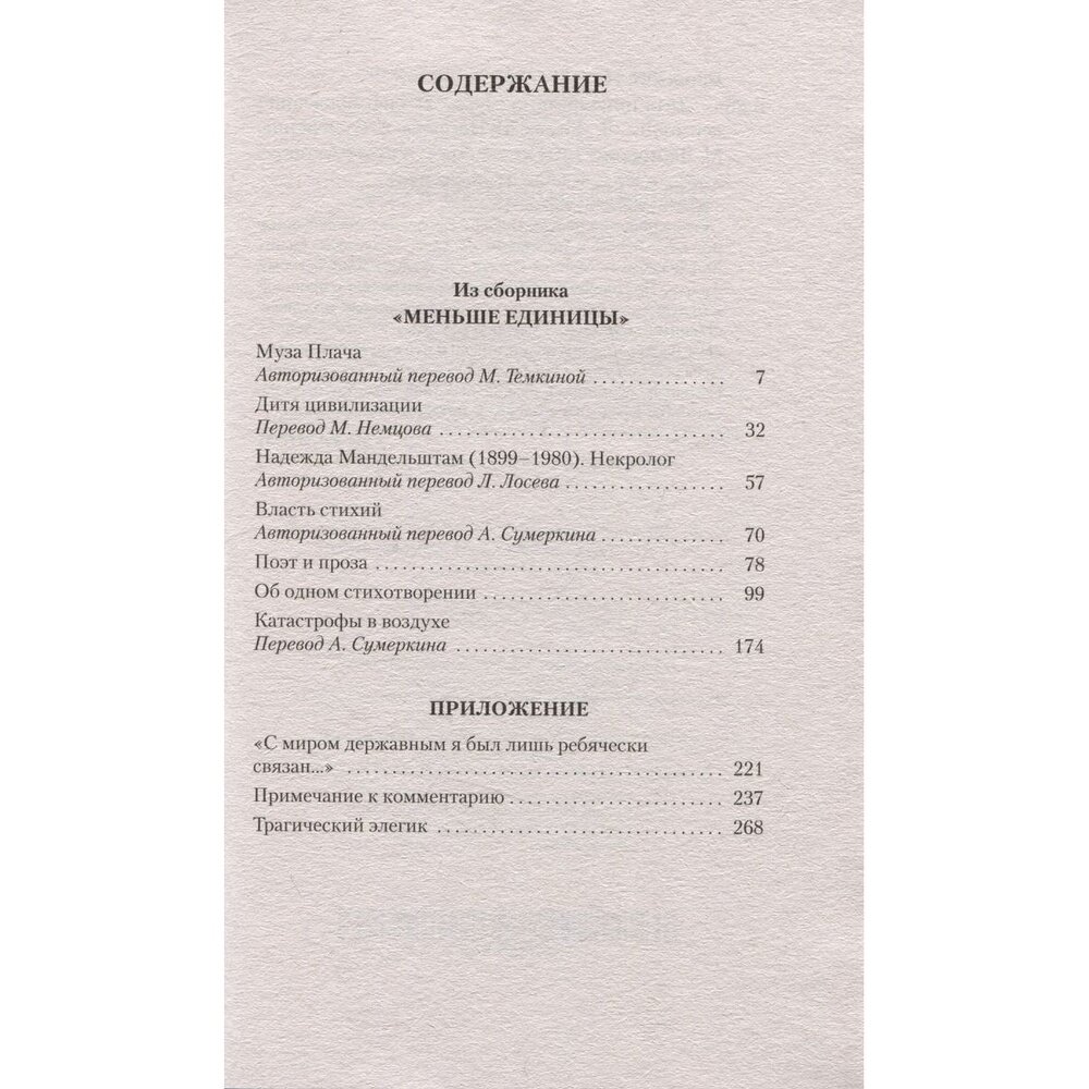 В книгу вошли эссе Иосифа Бродского, посвященные русским поэтам и писателям — Анне Ахматовой, Осипу Мандельштаму, Марине Цветаевой, Федору Достоевскому, Андрею Платонову и др. Бродский размышляет о прошлом и будущем русской литературы, о ее традициях и художественных исканиях. Большинство эссе, за исключением двух, были написаны по-английски и публикуются в переводе на русский язык. Они входили в сборник «Less Than One» («Меньше единицы»), изданный в 1986 году. Три эссе, написанные Бродским позднее, печатаются в приложении.