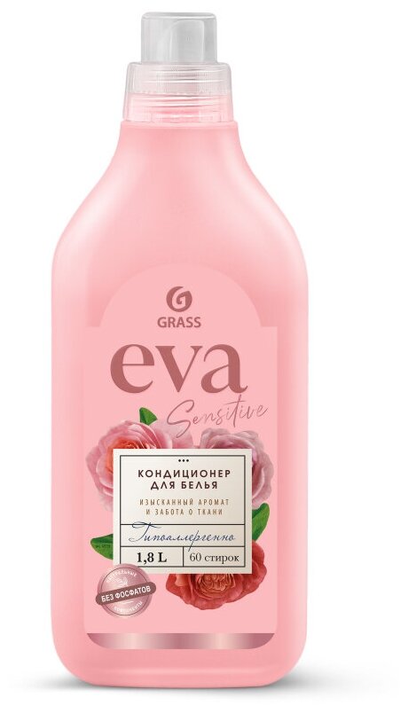 Кондиционер для белья Grass Eva Sensitive 1.8 л — концентрат для мягкости, свежести и защиты ткани. Экономия до 50% и забота о чувствительной коже.