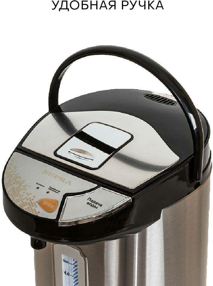 Термопот Supra черный/серебристый, объем 4.5л., мощность 800Вт, комбинированный насос