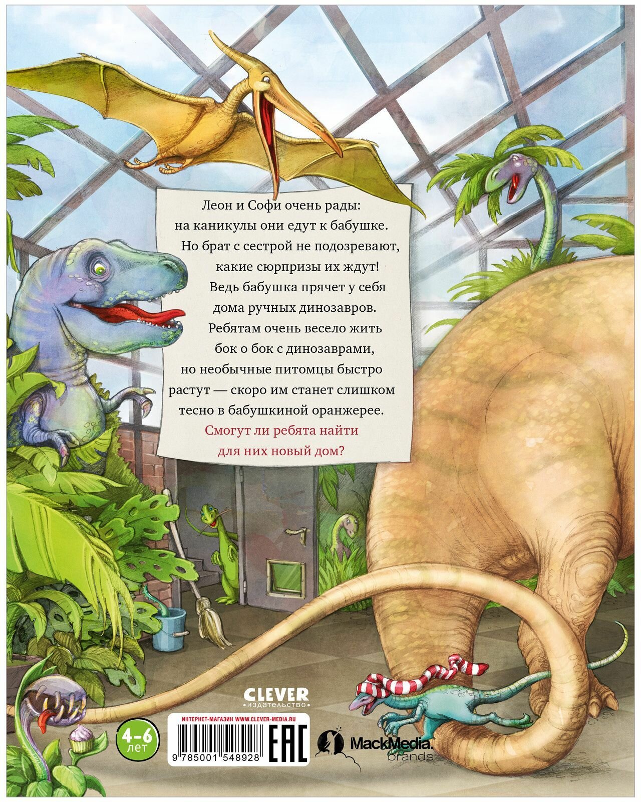 Леон и Софи едут на каникулы к бабушке, но и не подозревают, какие сюрпризы их ждут! Ведь бабушка прячет у себя дома ручных динозавров. Ребятам очень весело жить бок о бок с динозаврами, но необычные питомцы быстро растут — скоро им станет слишком тесно в бабушкиной оранжерее. Смогут ли Леон и Софи найти для них новый дом?