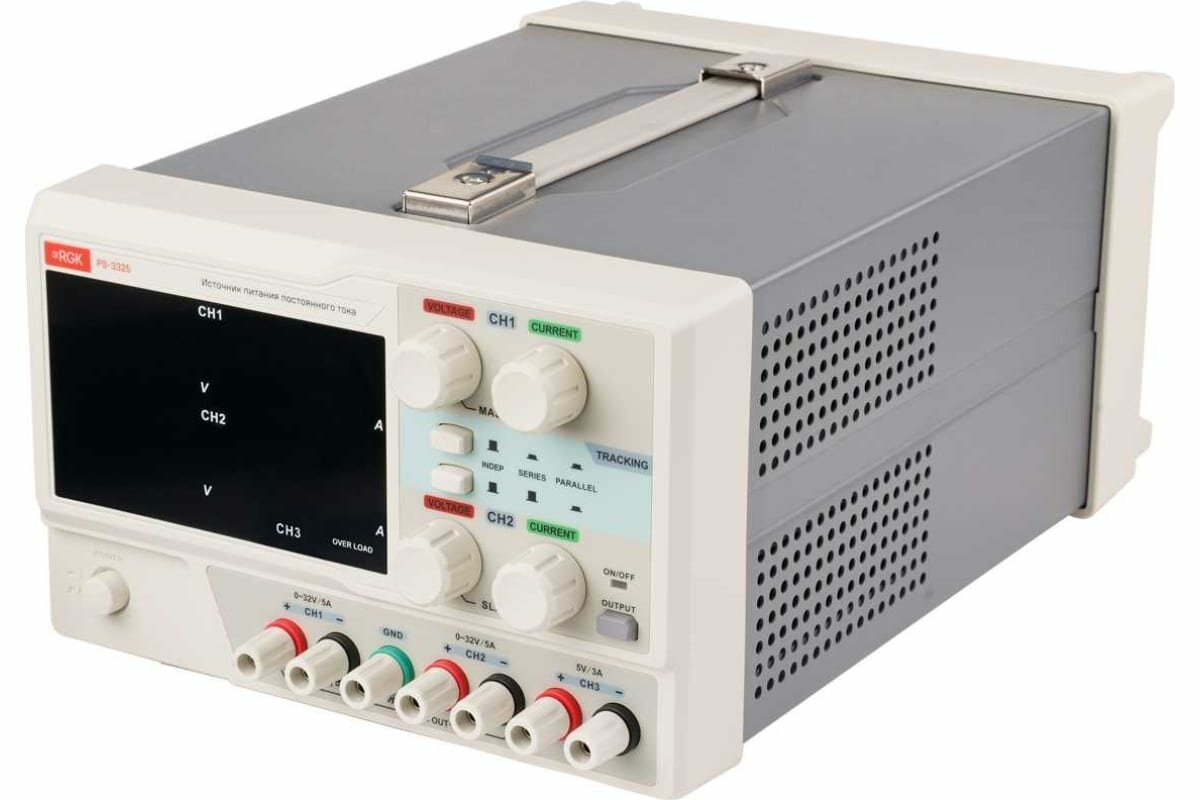 Источник питания RGK трехканальный 1 и 2 канал 0 до 32В/5А 3 канал 5В/3А работает от сети 110 В или 220 В PS-3325