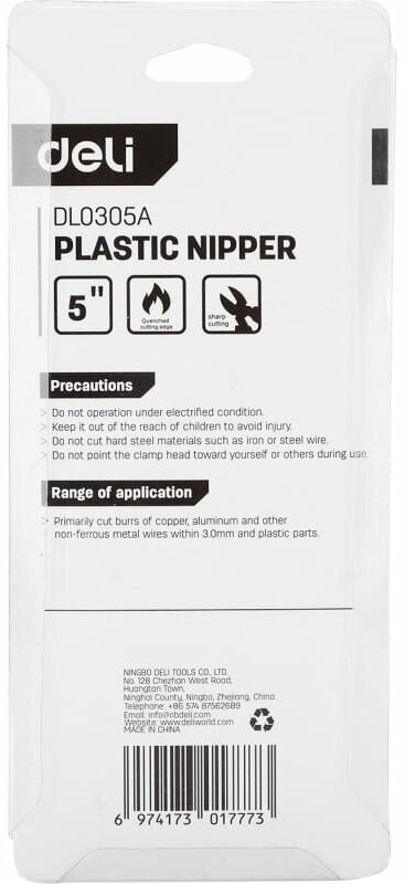 Бокорезы Deli DL0305A 5" Высокоуглеродистая сталь. ПВХ ручка.