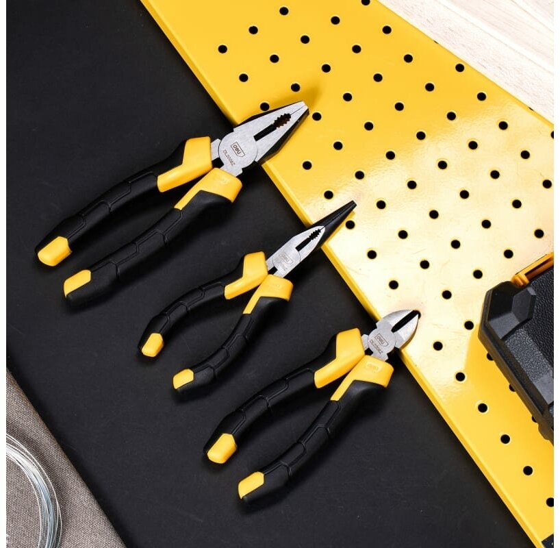 Набор плоскогубцев Deli DL2008Z-3 200мм комбинированные плоскогубцы 170мм длинногубцы 170мм бокорезы сталь Cr-V двухкомпонентная прорезиненная рукоятка