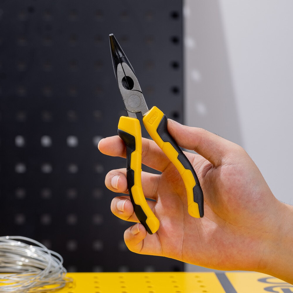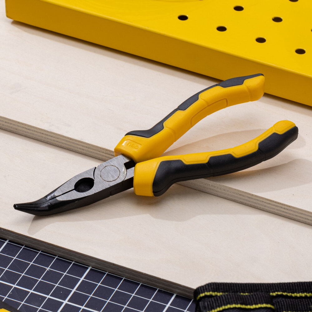 Удлиненные плоскогубцы с изогнутыми губками Deli DL2306 160мм, угол загиба губок 30°, сталь CrV, двухкомпонентная ручка
