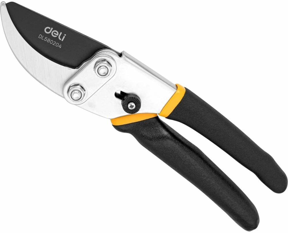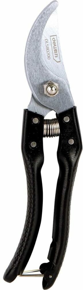 Прочие особенности и свойства | Секатор DELI DL580200 98491 используется для обрезки фруктовых деревьев, растений бонсай, садовых растений, цветов и кустов. Лезвия изготовлены из высококачественной стали 65Mn. Секатор оснащен эргономичными ручками и возвратной пружиной для удобства использования и снижения усталости рук. Максимальное регулируемое расстояние между лезвиями - 14 мм.,Углеродистая сталь 65Mh - надежность,Возвратная пружина - снижение нагрузки на кисть в процессе работы,Фиксатор рукоятей - безопасное хранение и транспортировка,Эргономичные металлические рукояти - надежный хват |