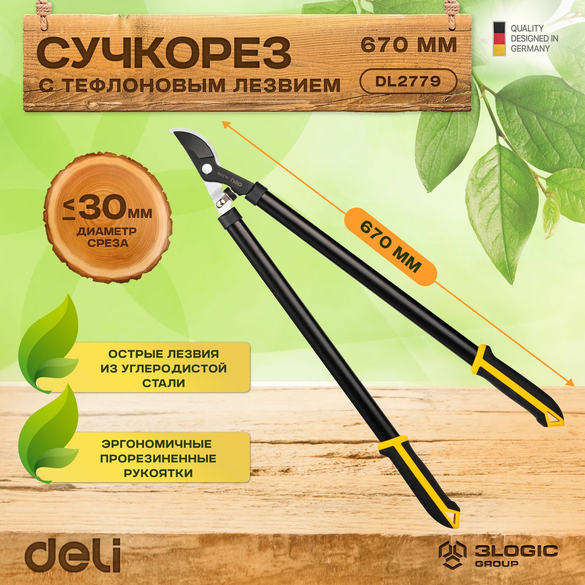 Сучкорез садовый Deli DL2779 длина 670мм, макс. диаметр резки 30мм, сталь 55С
