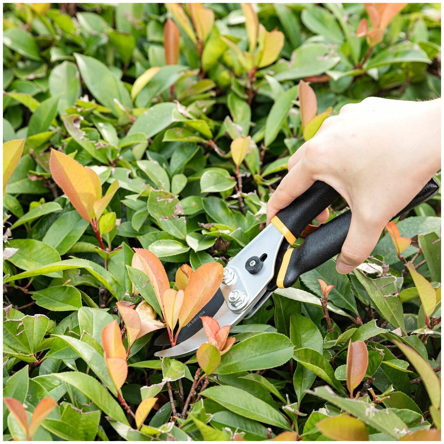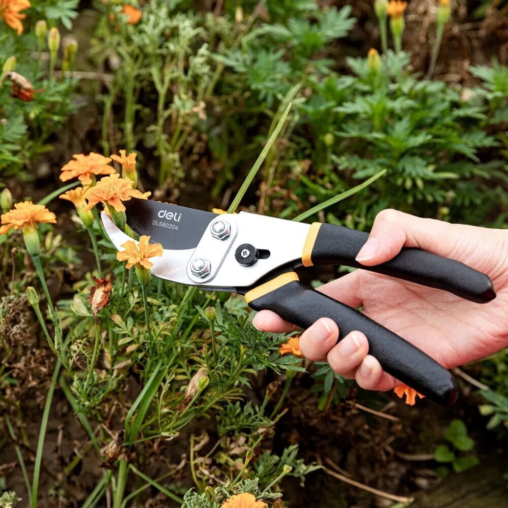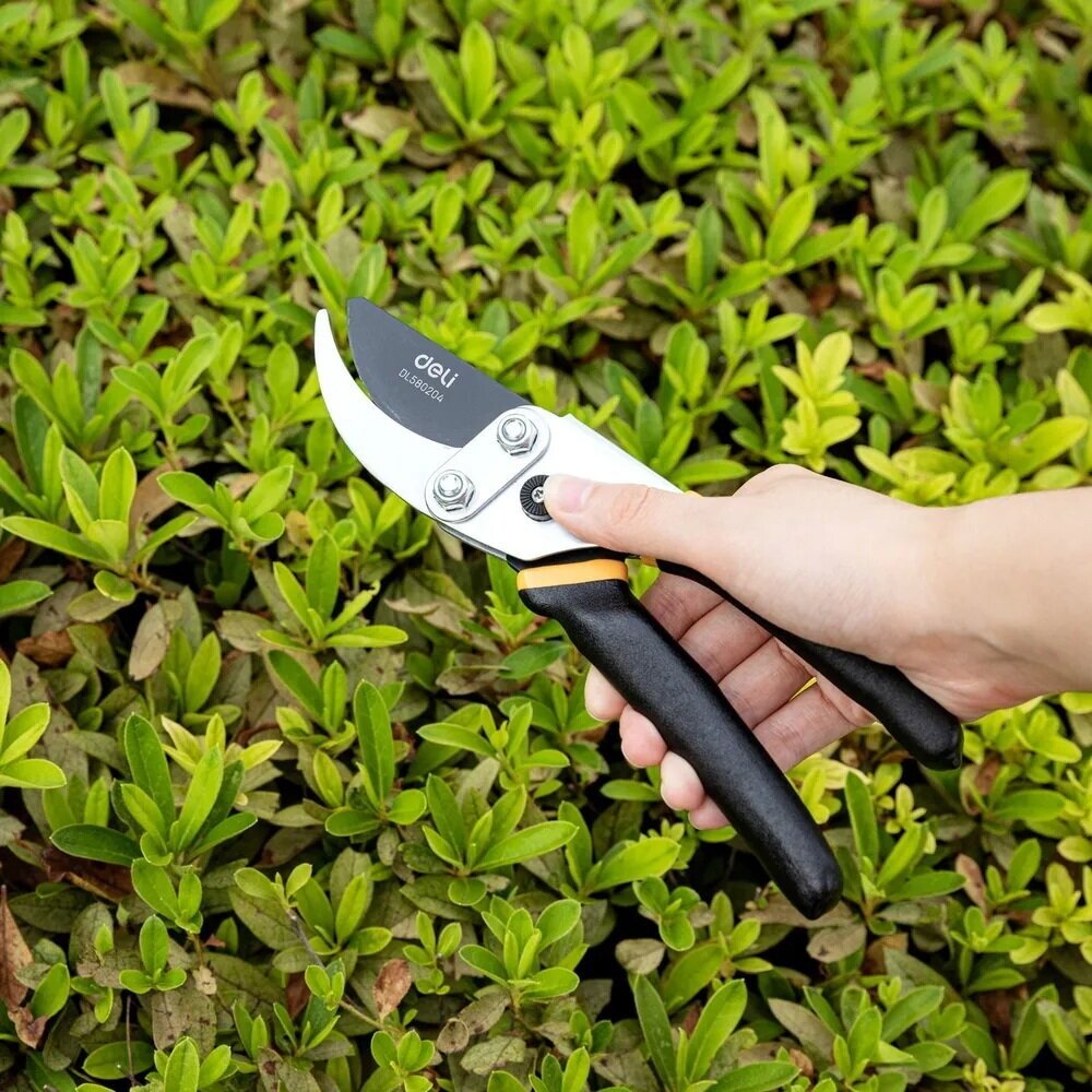 Прочие особенности и свойства | Универсальный садовый секатор DELI DL580204 200 мм, сталь 55С, тефлон, уплотнённая противоскользящая ручка 98486 используется для обрезки фруктовых деревьев, растений бонсай, садовых растений, цветов и кустов. Лезвия изготовлены из высококачественной стали 55С. Секатор оснащен пластиковыми ручками для удобного захвата. Максимальный диаметр сучьев - 15 мм.,Инструментальная сталь 55С - надежность,Тефлоновое покрытие лезвия - предотвращение прилипания мусора,Противоскользящая рукоять - надежный хват,Возвратная пружина - снижение нагрузки на кисть в процессе работы,Фиксатор лезвий - безопасное хранение и транспортировка |