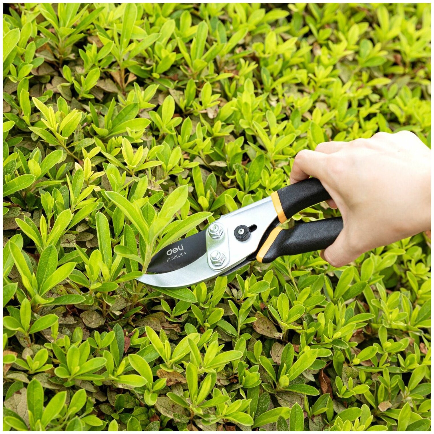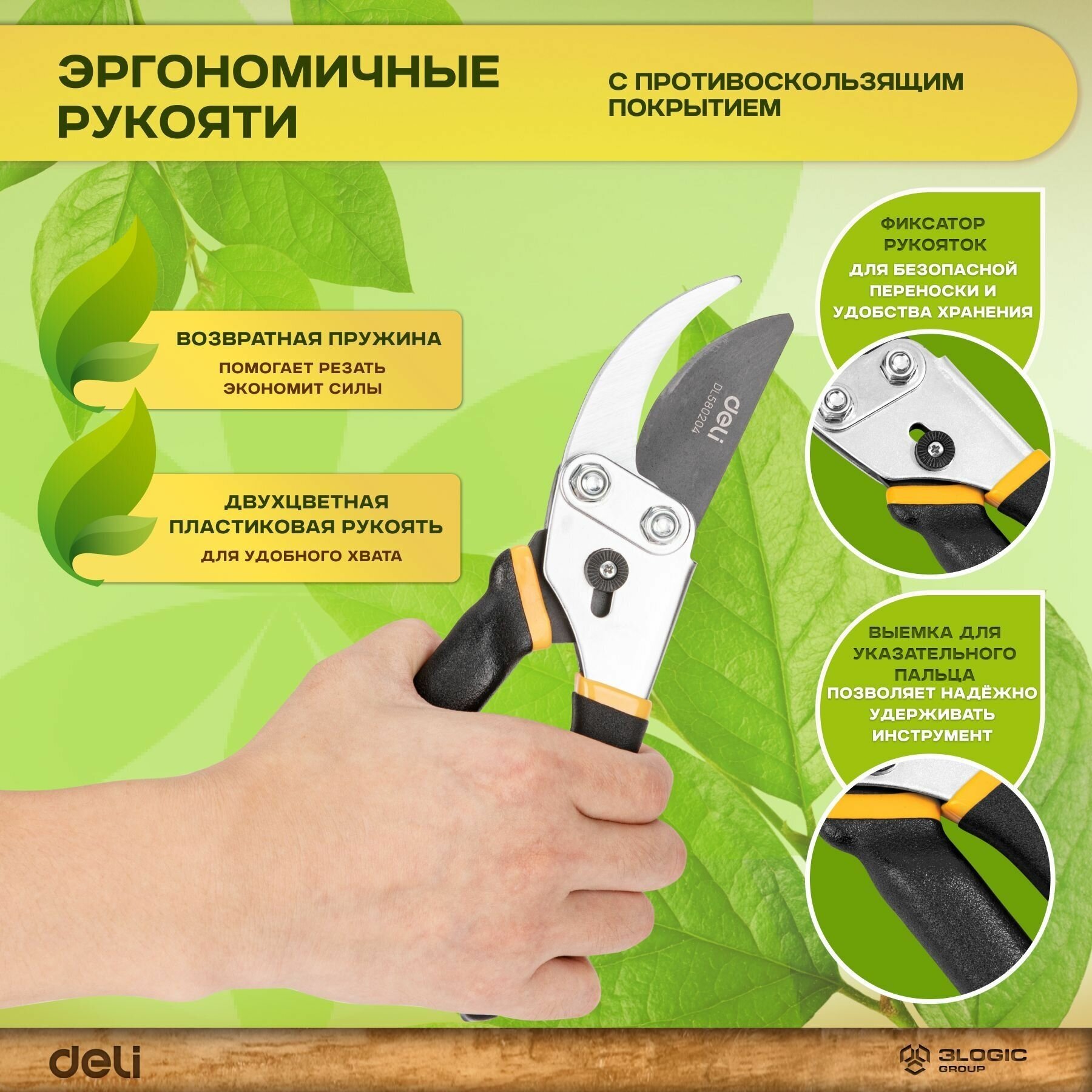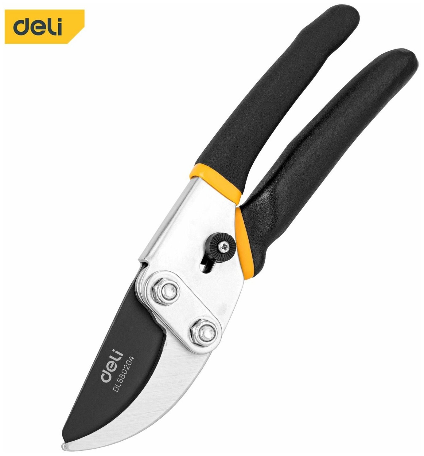 Секатор садовый Deli DL580204 лезвия с тефлоновым покрытием длина 200мм макс.диаметр резки 15мм сталь 55С (размер: малый)