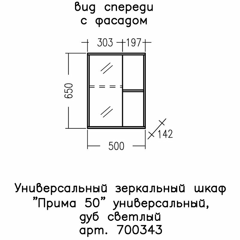 Зеркало-шкаф СанТа Прима 50 дуб светлый 700343