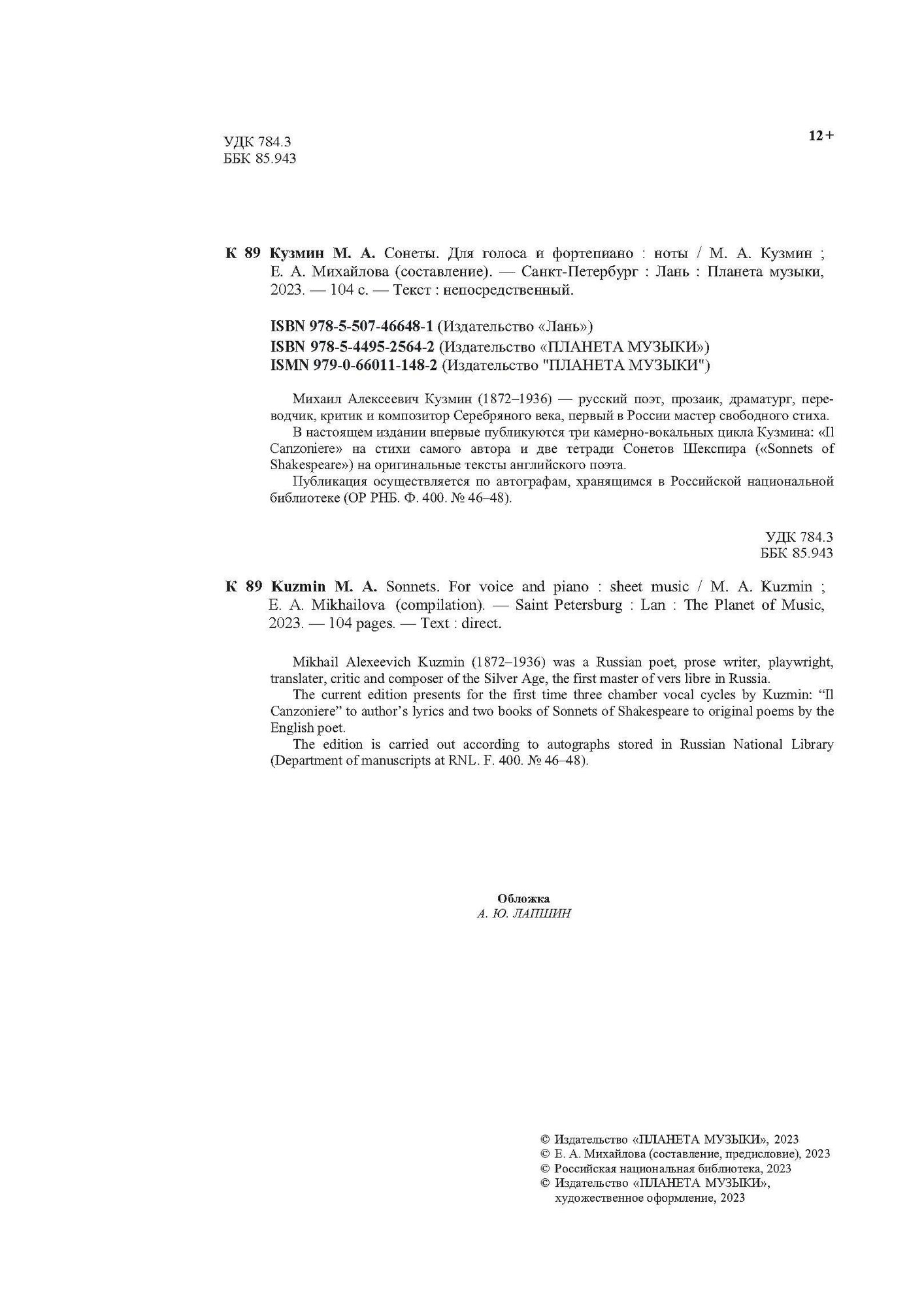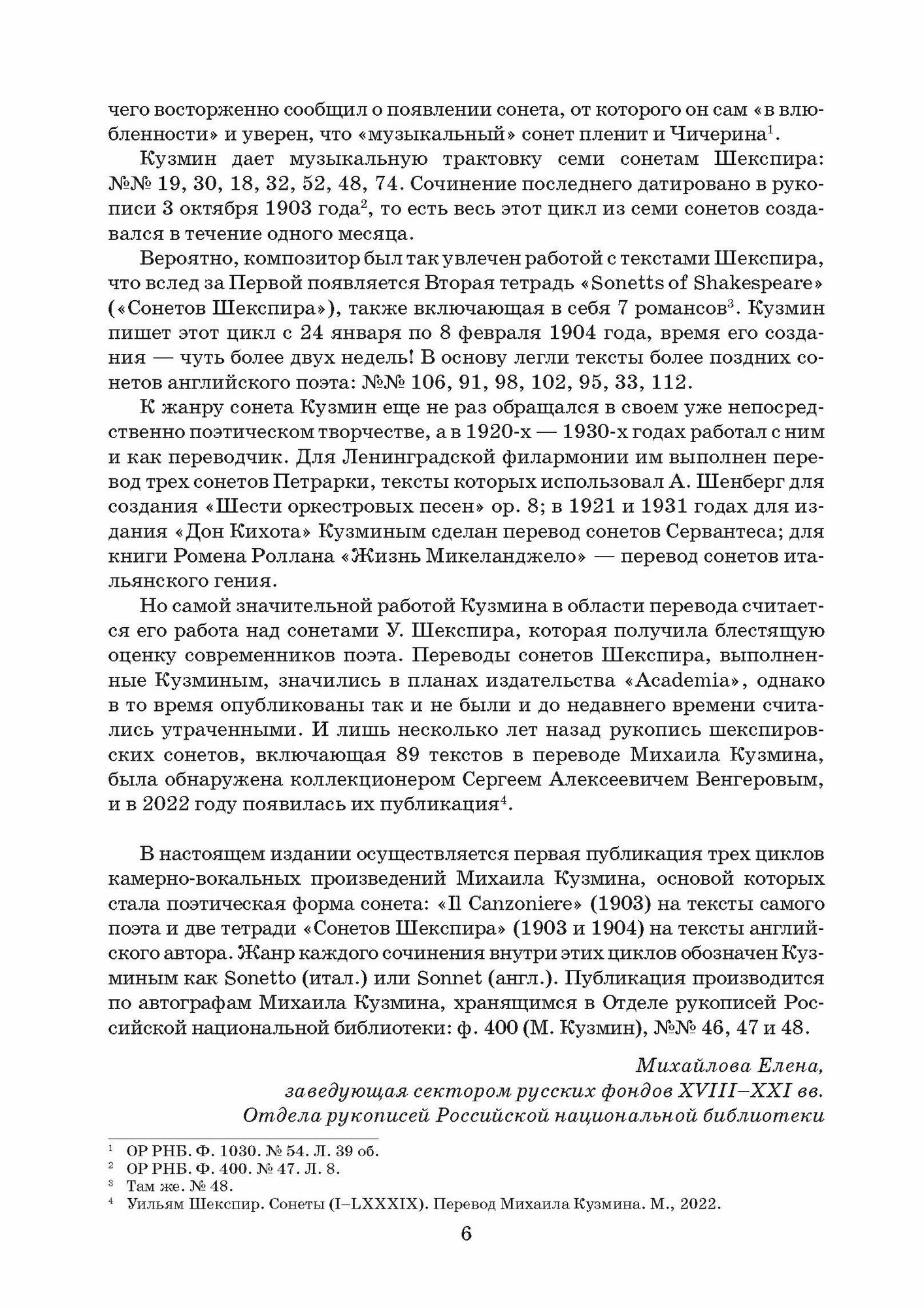 В настоящем издании впервые публикуются три камерно-вокальных цикла Кузмина: «Il Canzoniere» на стихи самого автора и две тетради Сонетов Шекспира («Sonnets of Shakespeare») на оригинальные тексты английского поэта.