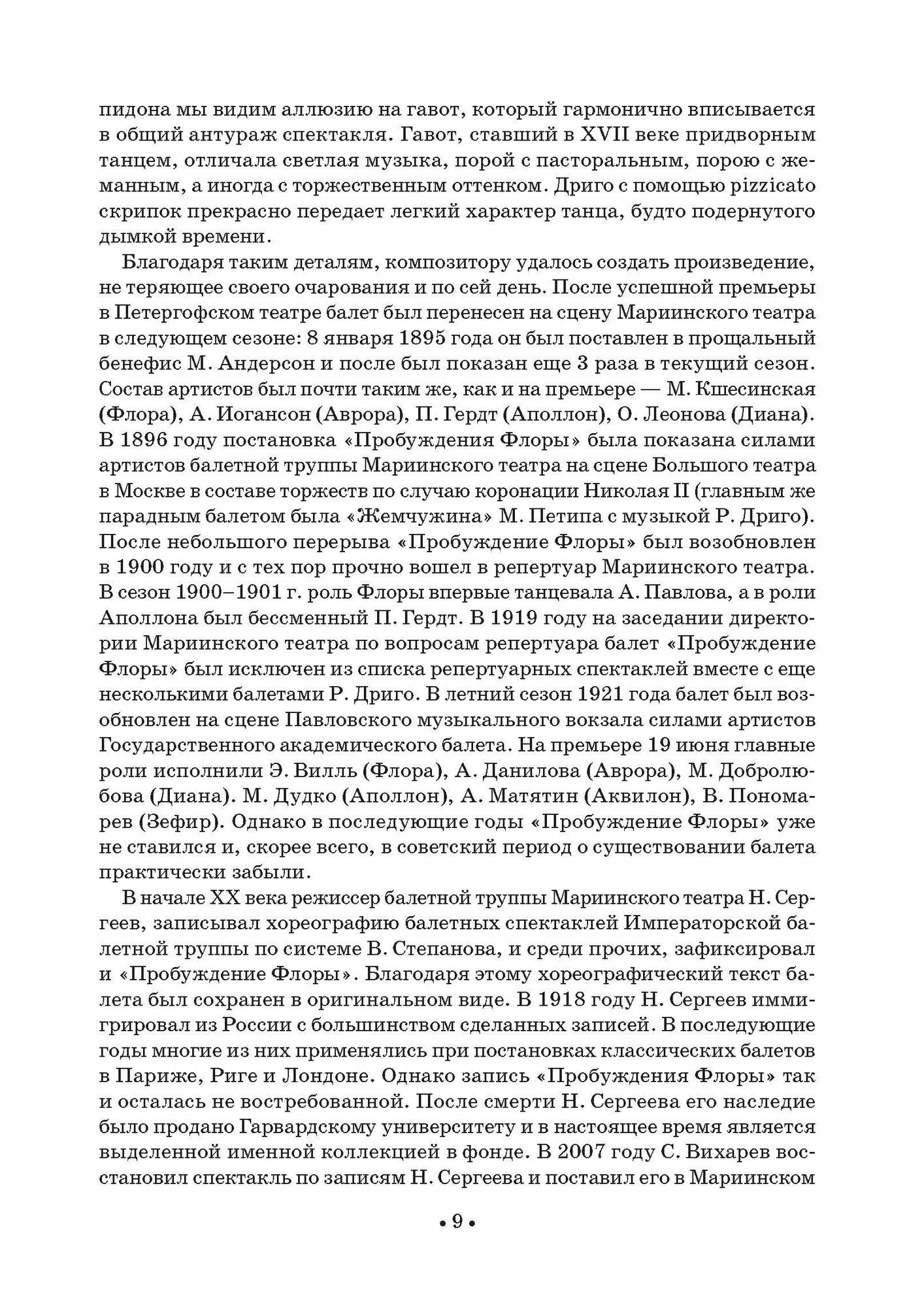 Вниманию читателей впервые предлагается издание клавира балета Риккардо Дриго «Пробуждение Флоры». Поставленный в 1894 году как парадный спектакль по случаю бракосочетания Великой княжны Ксении Александровны и Великого князя Александра Михайловича, этот балет в XX веке был лишь воспоминанием, возродившись в 2007 году в реконструированной версии Сергея Вихарева (спектакль стал победителем в двух номинациях национальной театральной премии «Золотая маска»). Чуть ранее, в 2004 году Pas de quatre из этого балета (также ныне публикующийся) был реконструирован Юрием Бурлака. Издание дополнено вариантами либретто балета и иллюстративным материалом.