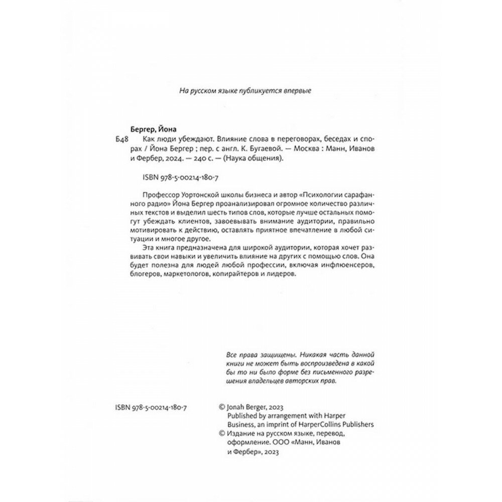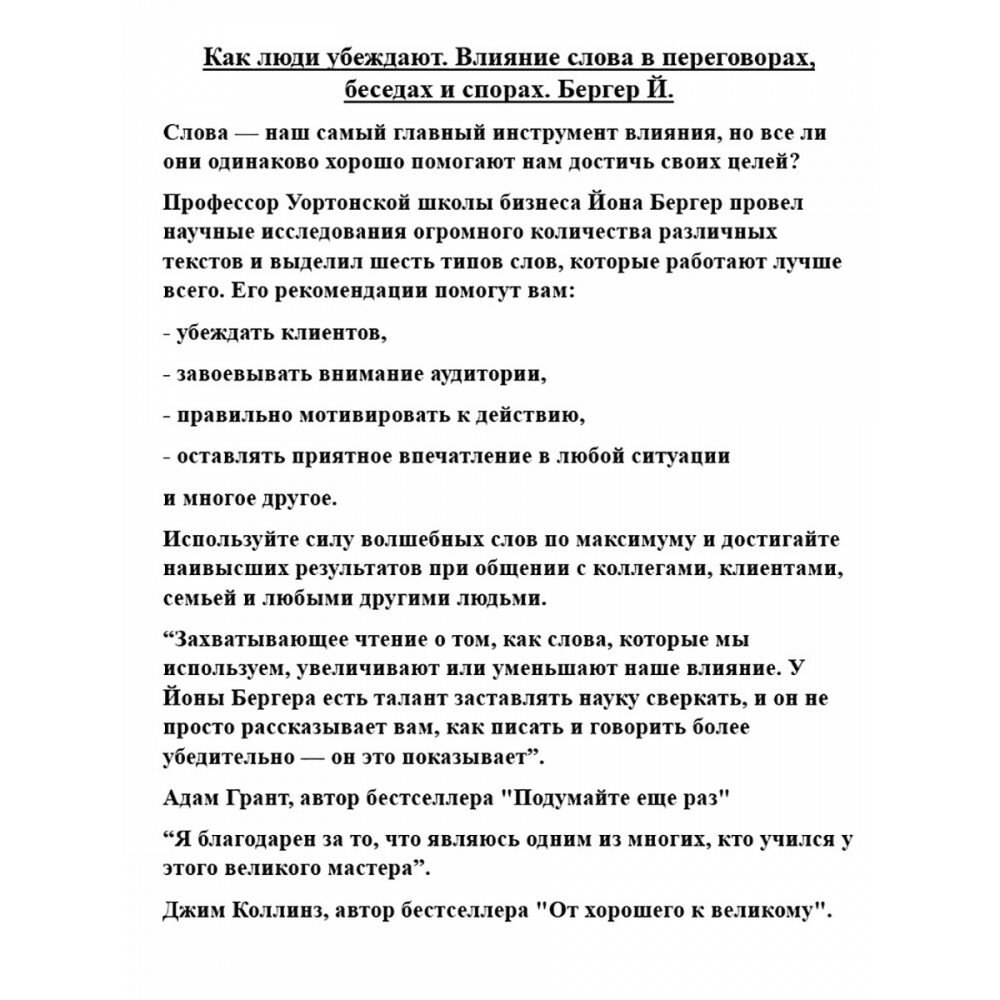 “Захватывающее чтение о том, как слова, которые мы используем, увеличивают или уменьшают наше влияние. У Йоны Бергера есть талант заставлять науку сверкать, и он не просто рассказывает вам, как писать и говорить более убедительно — он это показывает”.