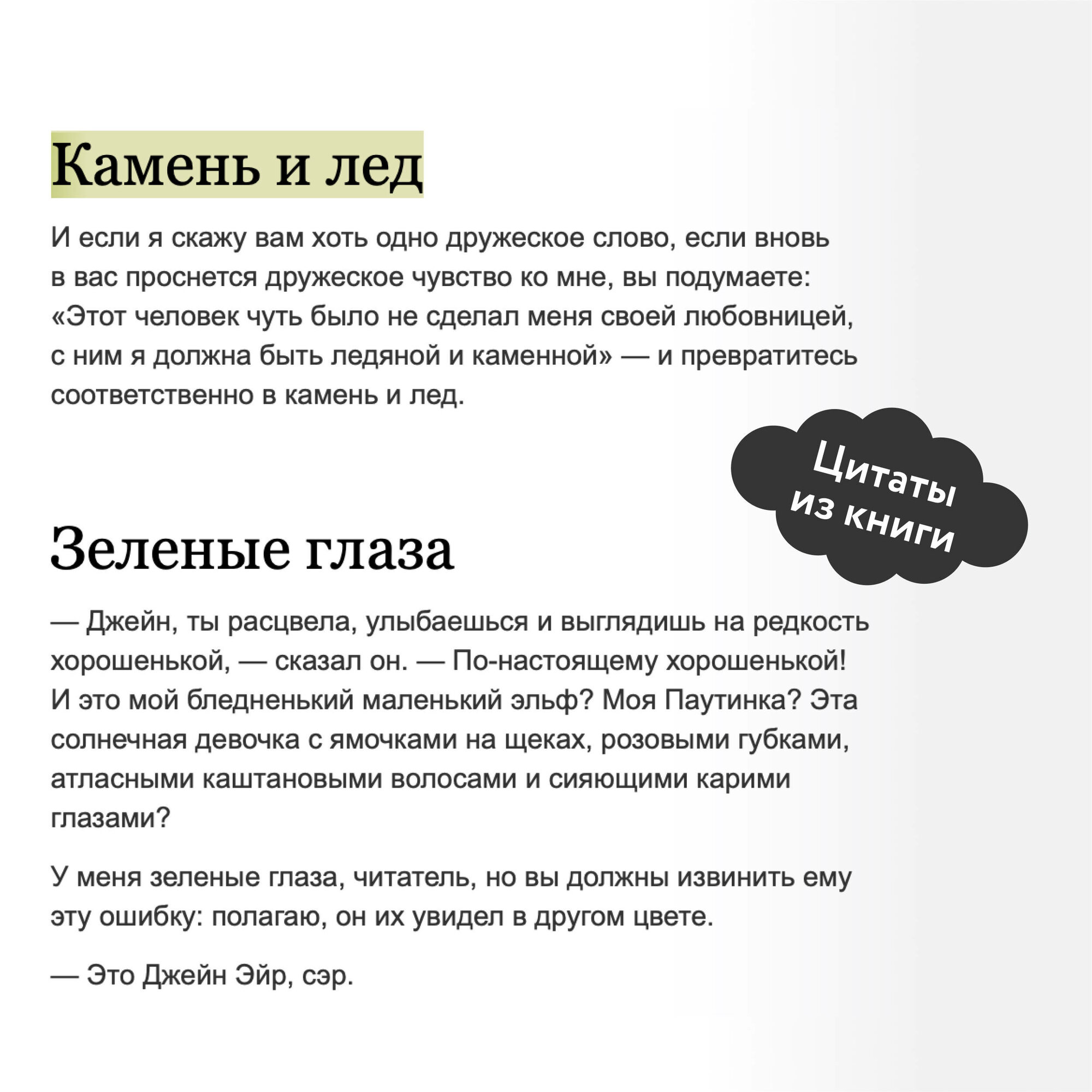 История Джейн, в раннем возрасте оставшейся сиротой на попечение равнодушной тети, позже отданной в приют и работающей гувернанткой в доме со странным, угрюмым хозяином. Роман о зарождающемся чувстве, свободе, великодушии и верности, несмотря на все преграды. Нестареющая классика английской литературы.
