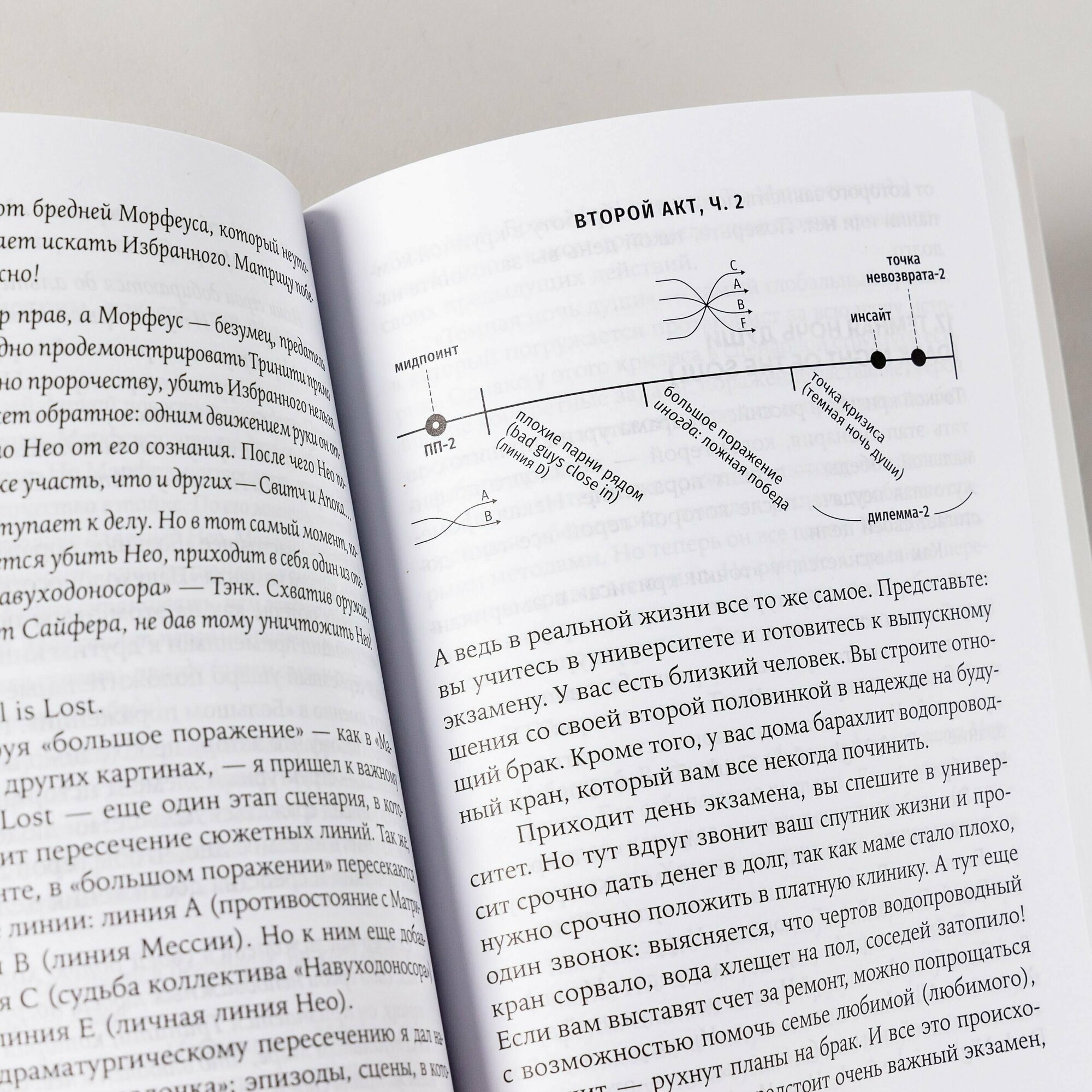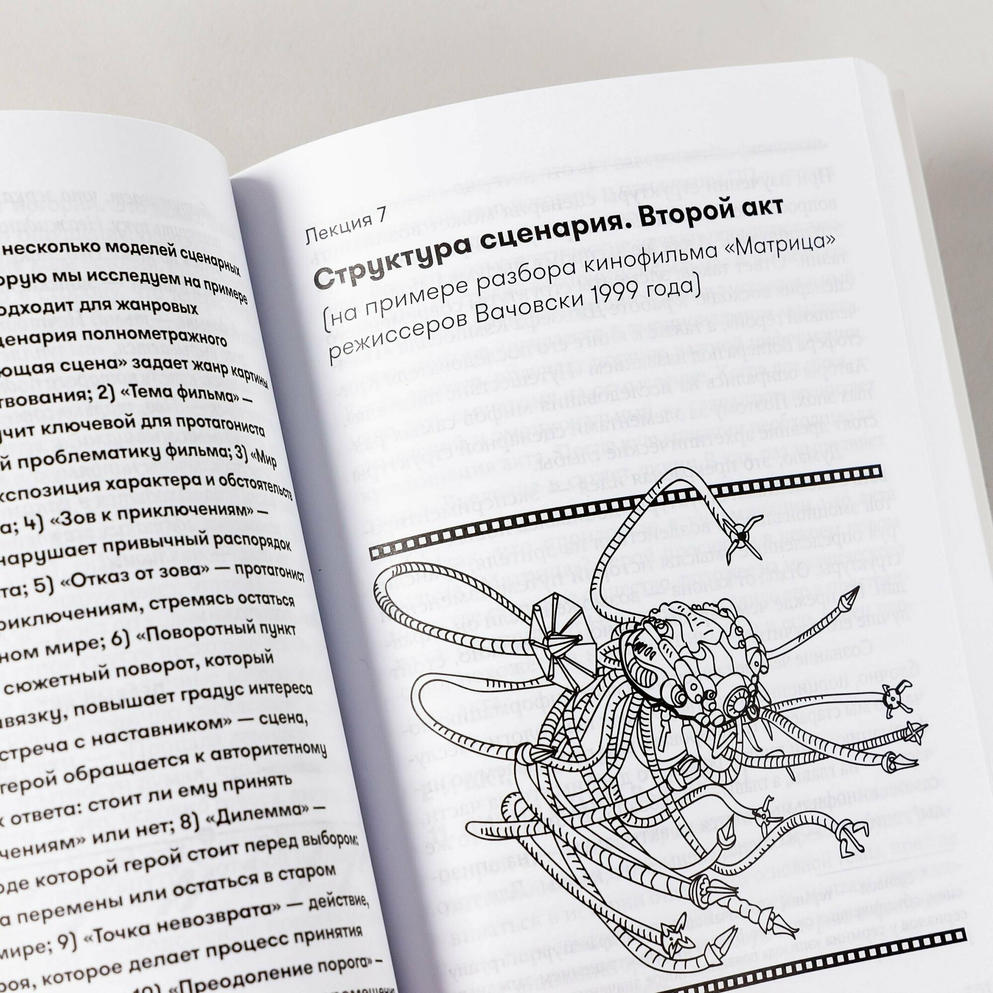 В своей книге он приводит наглядные примеры, как реализуются эти приемы в кино, и помогает авторам в работе над сценарием — от идеи до первого драфта. Через разбор культового фильма «Матрица» Олег Сироткин дает понятную и простую схему сценарной структуры фильма.