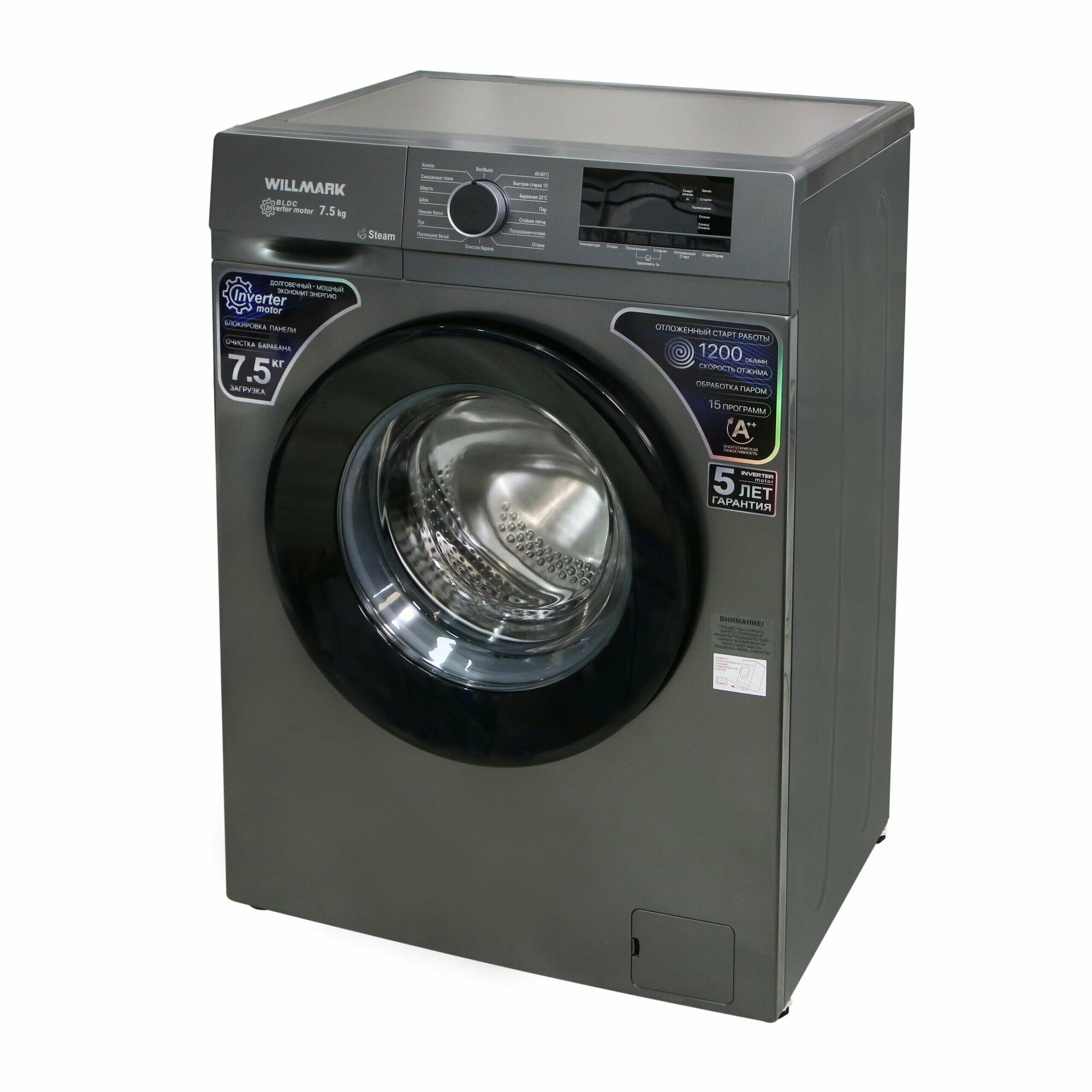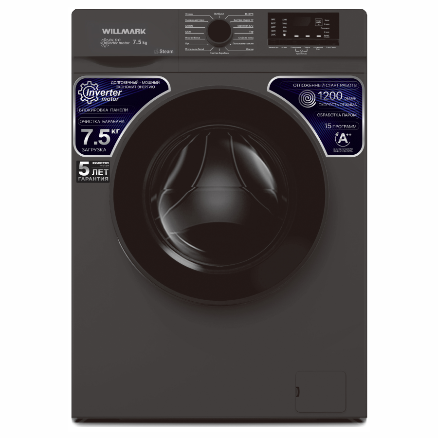 Стиральная машина WILLMARK с инверторным двигателем в графитовом цвете станет отличным приобретением для большой семьи, ведь она рассчитана на 7,5кг загрузки сухого белья. Если вы что-то забыли положить сразу, можно это сделать уже в процессе, не отменяя программу, благодаря функции дозагрузки белья. Модель поддерживает 15 программ, а также разнообразные настройки для адаптации цикла под определенную ткань или тип вещей. Температура, при которой ведется стирка, может быть изменена на усмотрение пользователя. Если стирку необходимо запланировать на удобное время, можно воспользоваться отложенным стартом (от 3 до 18 часов). Благодаря стильному и современному дизайну, данная модель отлично впишется в любой интерьер. Стиральная машина WILLMARK – это незаменимый и помощник в доме.