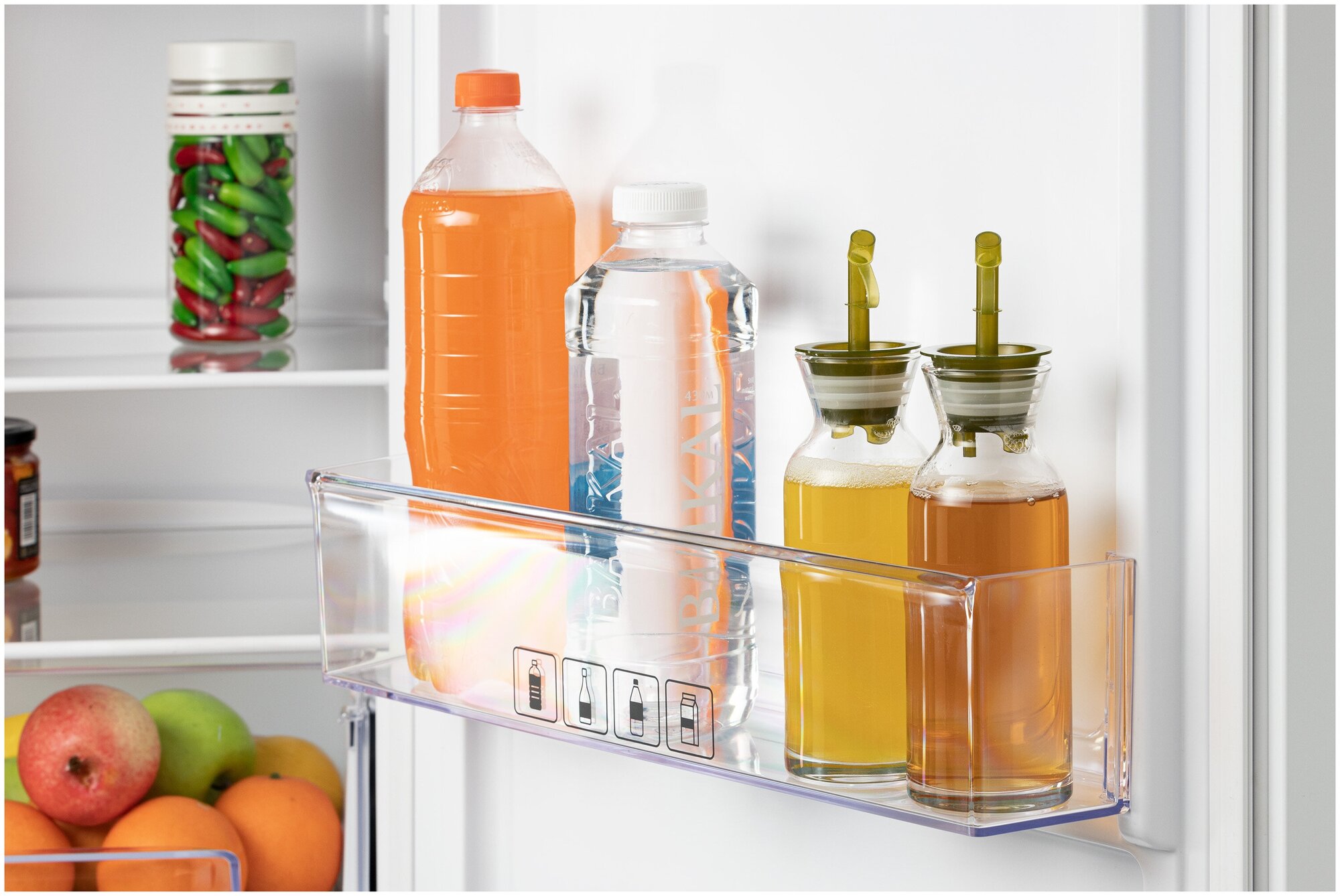 Морозильная камера этого холодильника имеет ручное размораживание, а минимальная температура в ней составляет -18°C. Холодильная камера оснащена капельным размораживанием, что упрощает процесс чистки от образующегося льда.