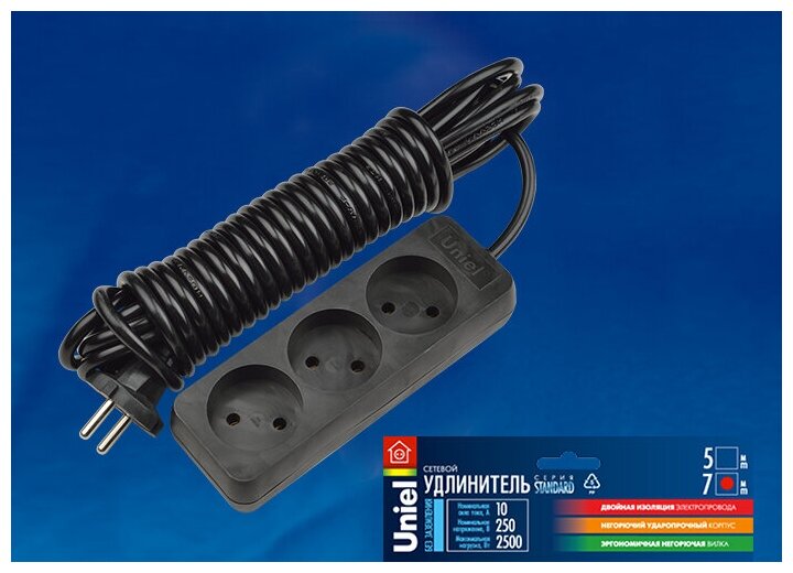 Сетевой фильтр Uniel S-Cd S-CD3-5 BLACK UL-00003605